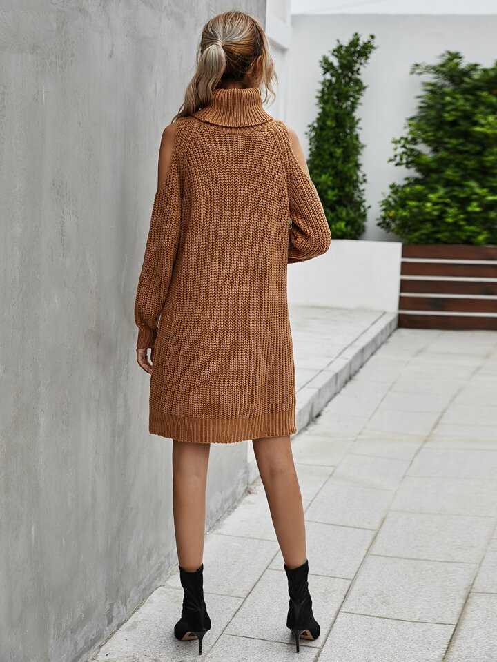 Turtleneck Cold Shoulder Sweater Dress