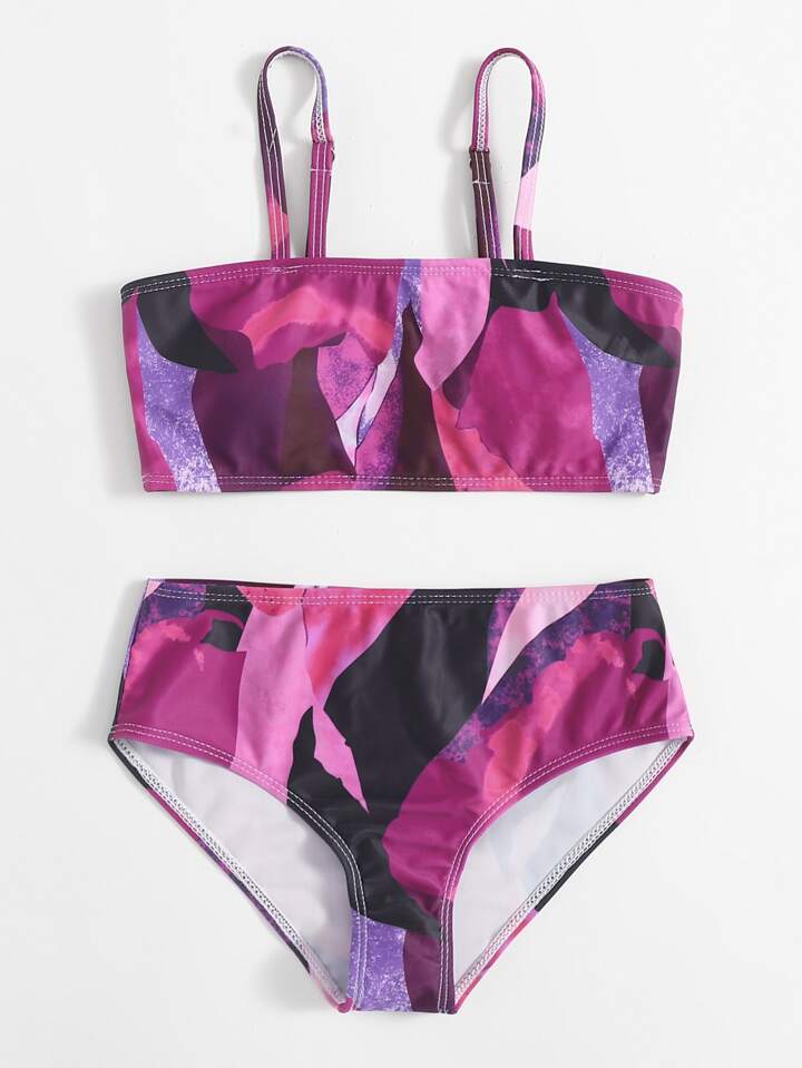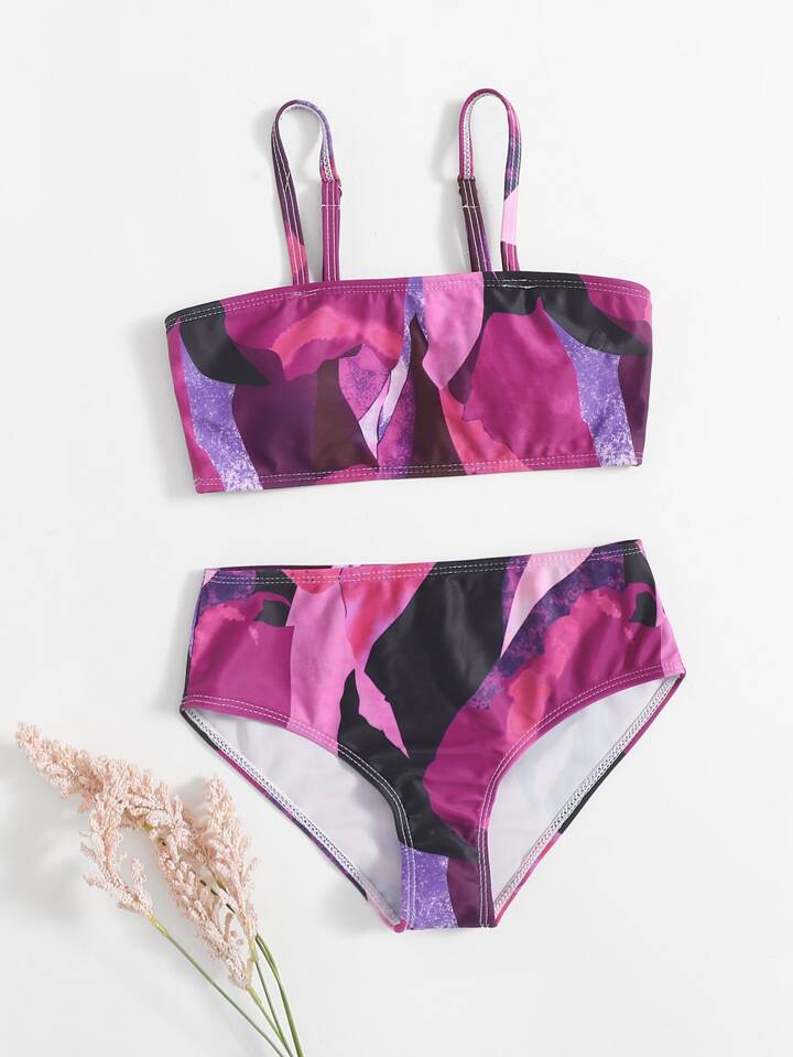 Tween Girl Allover Print Bikini Set Summer Beach