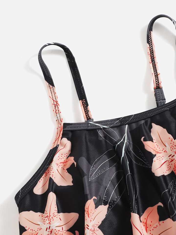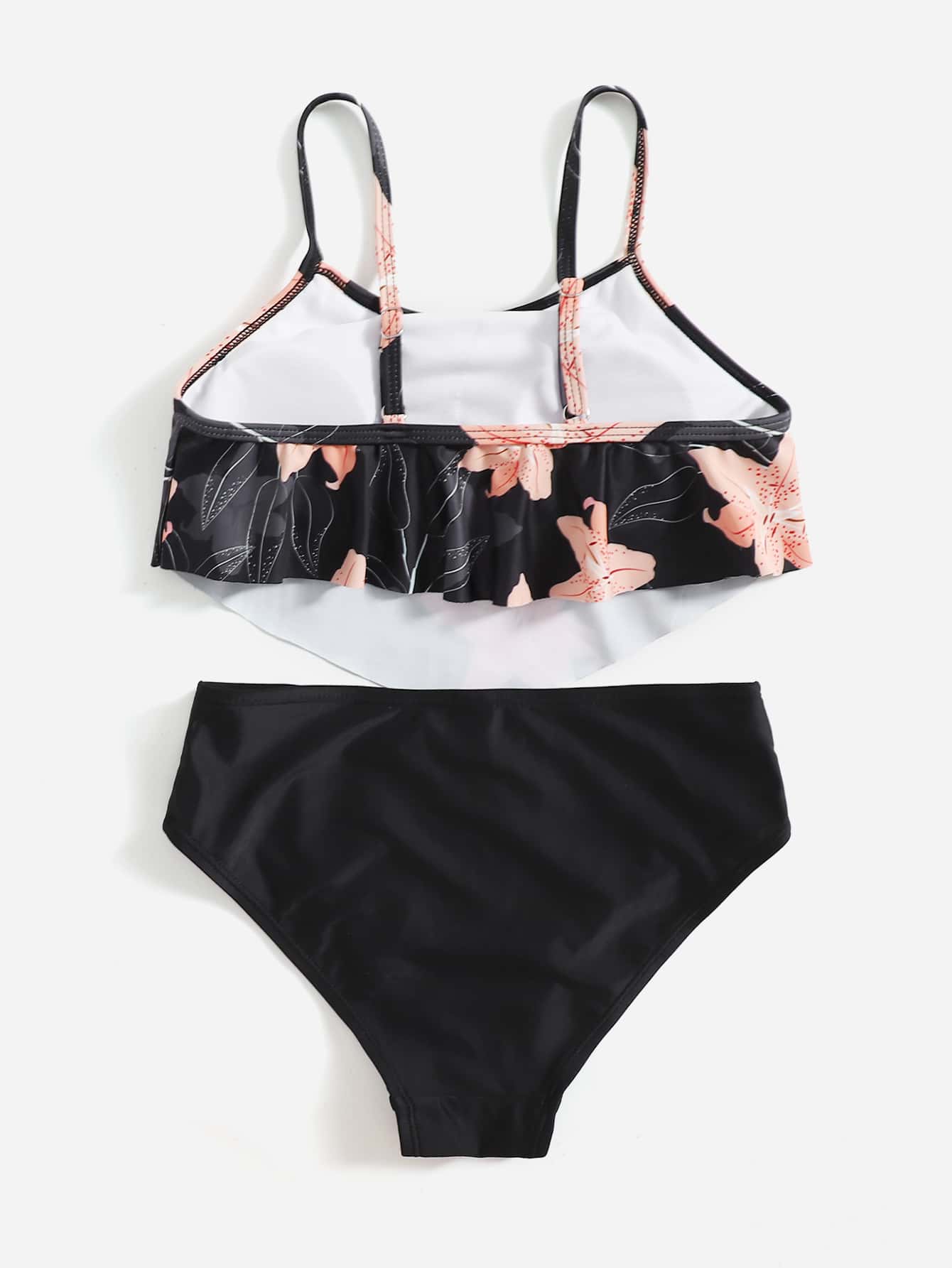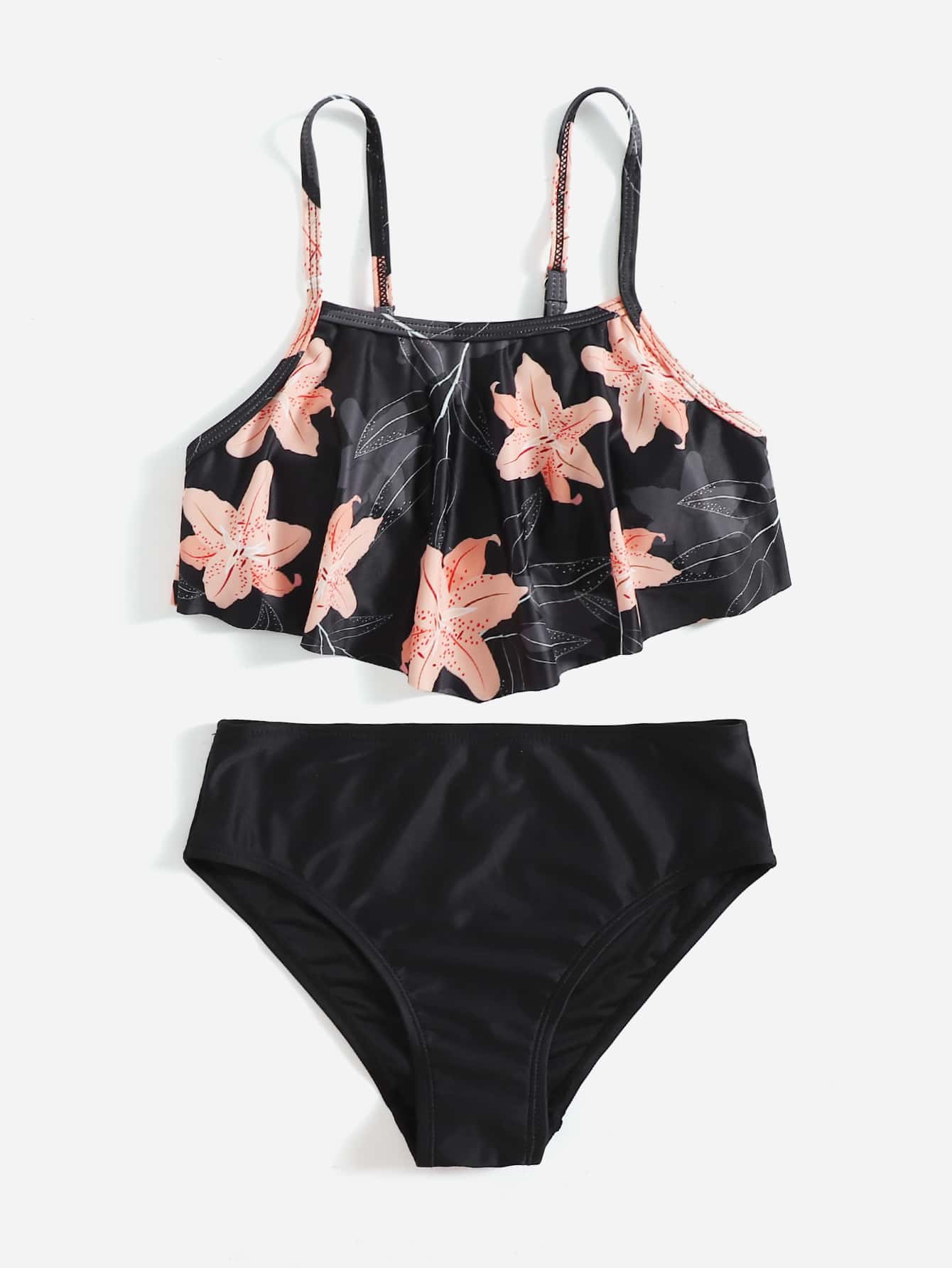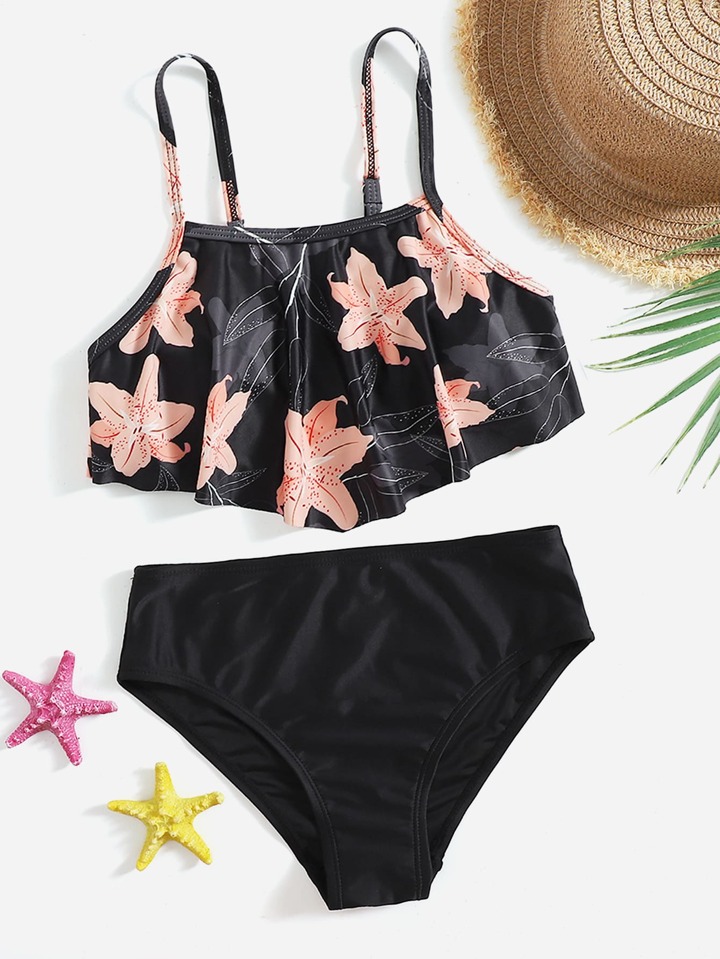 Tween Girl Floral Print Flounce Bikini Set Summer Beach