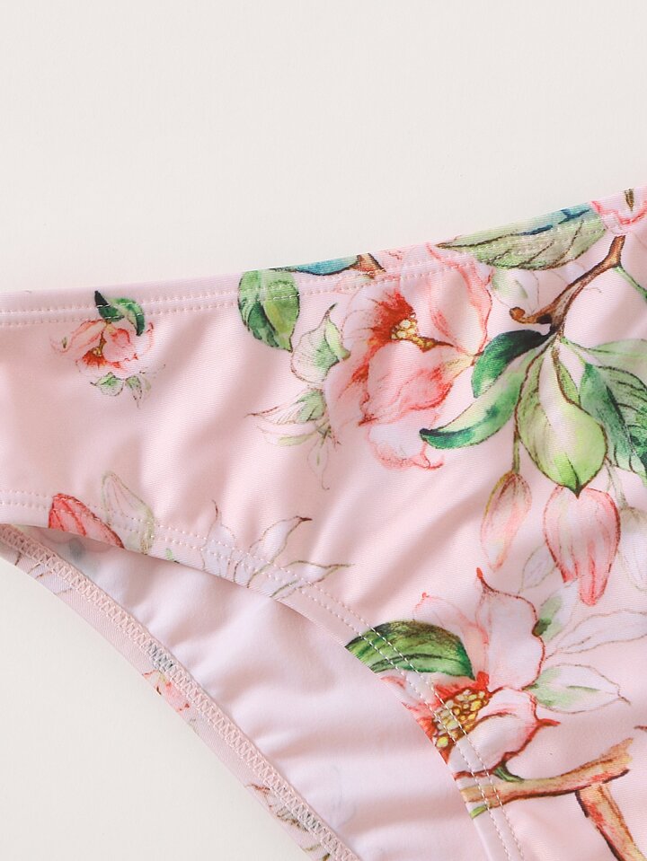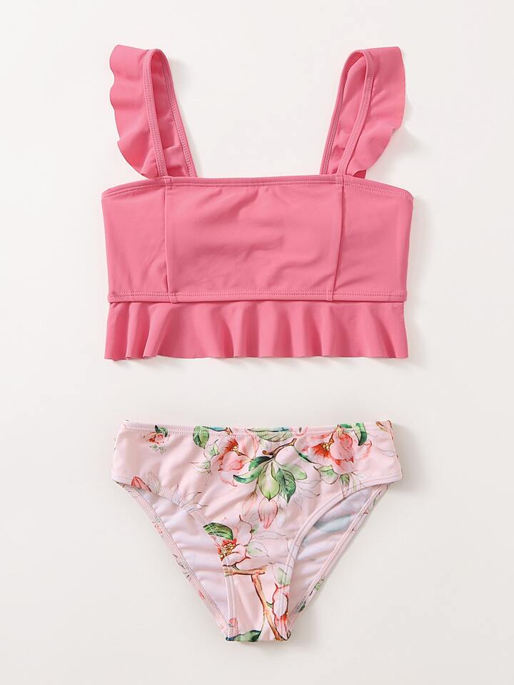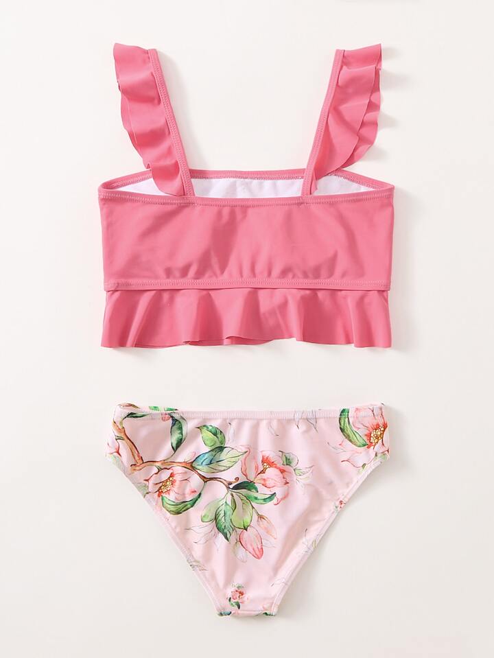 Tween Girl Floral Print Ruffle Bikini Set Summer Beach