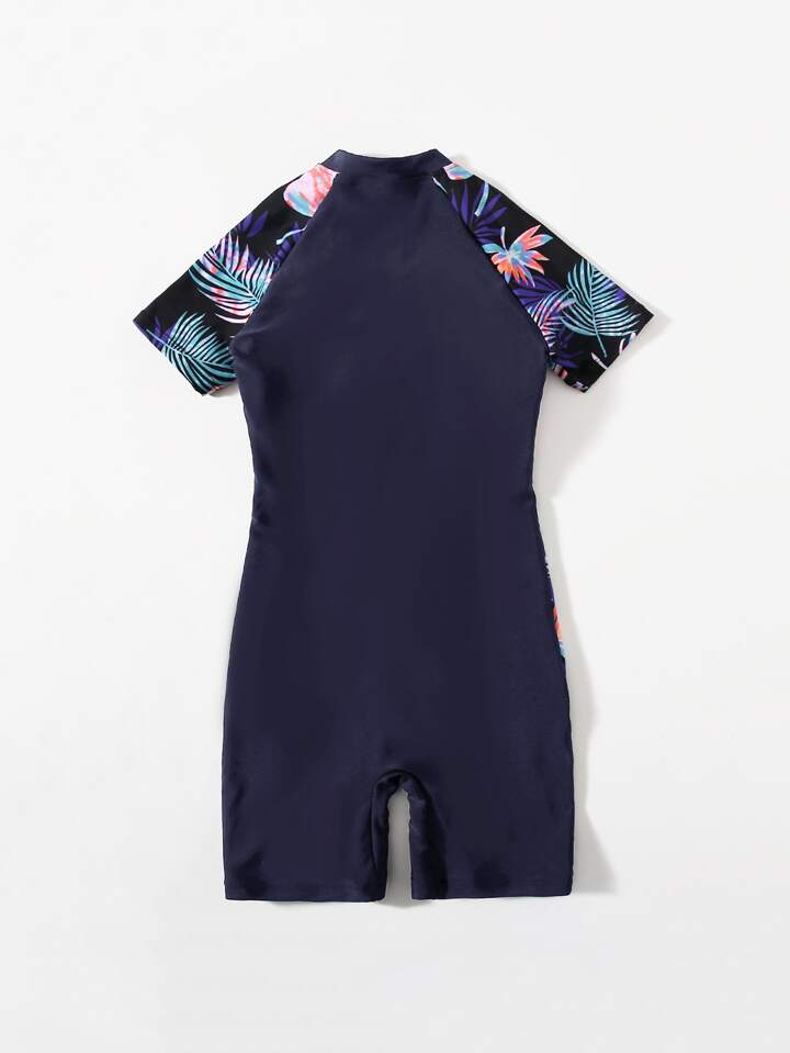 Tween Girl Plant Print Zip Front One Piece Swimsuit