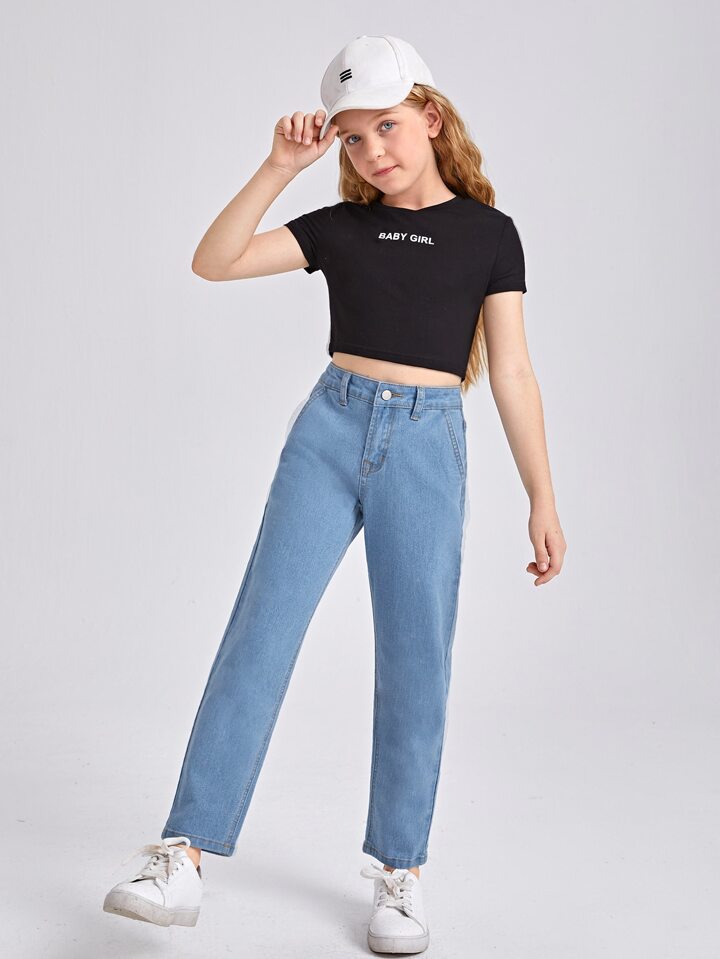 Tween Girl Zipper Fly Slant Pocket Jeans