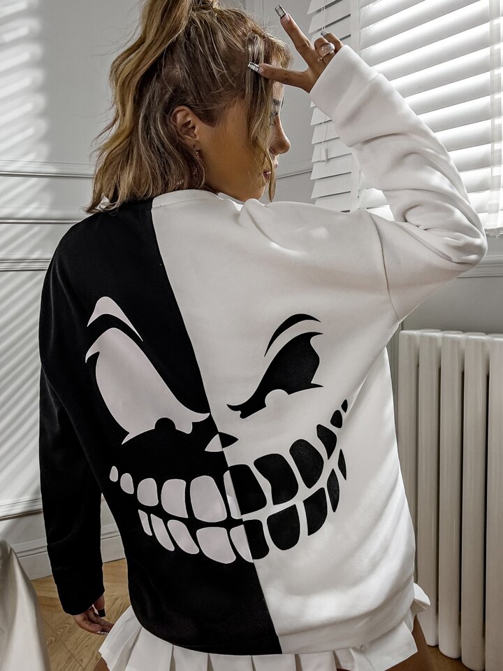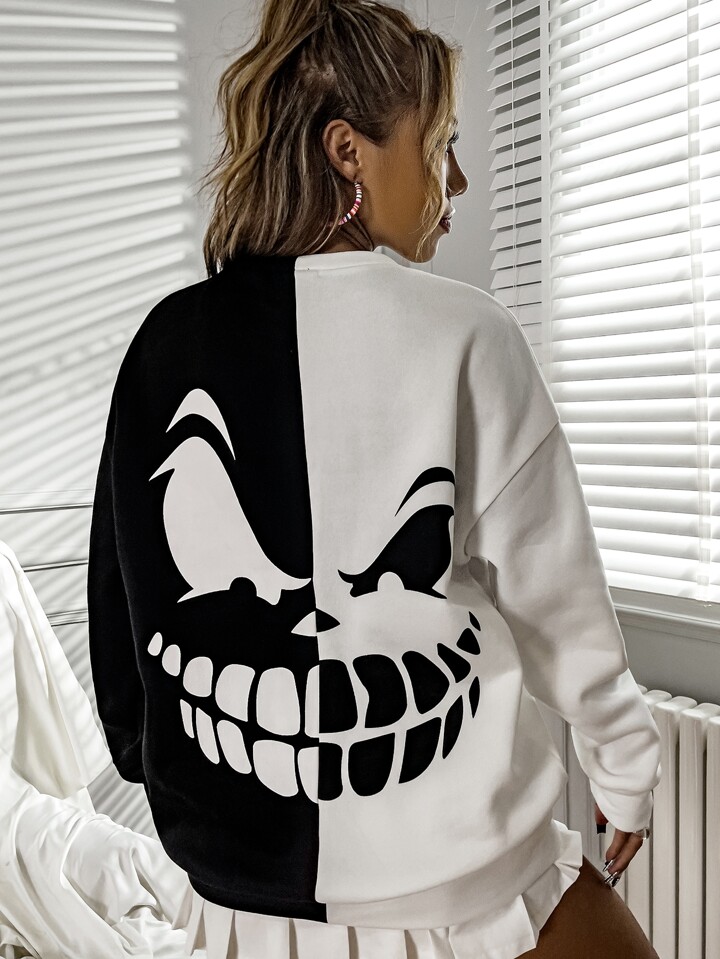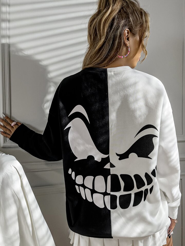Two Tone Halloween Print Drop Shoulder Sweatshirt