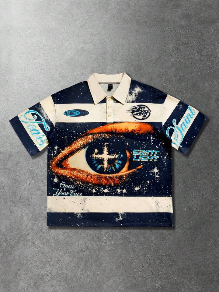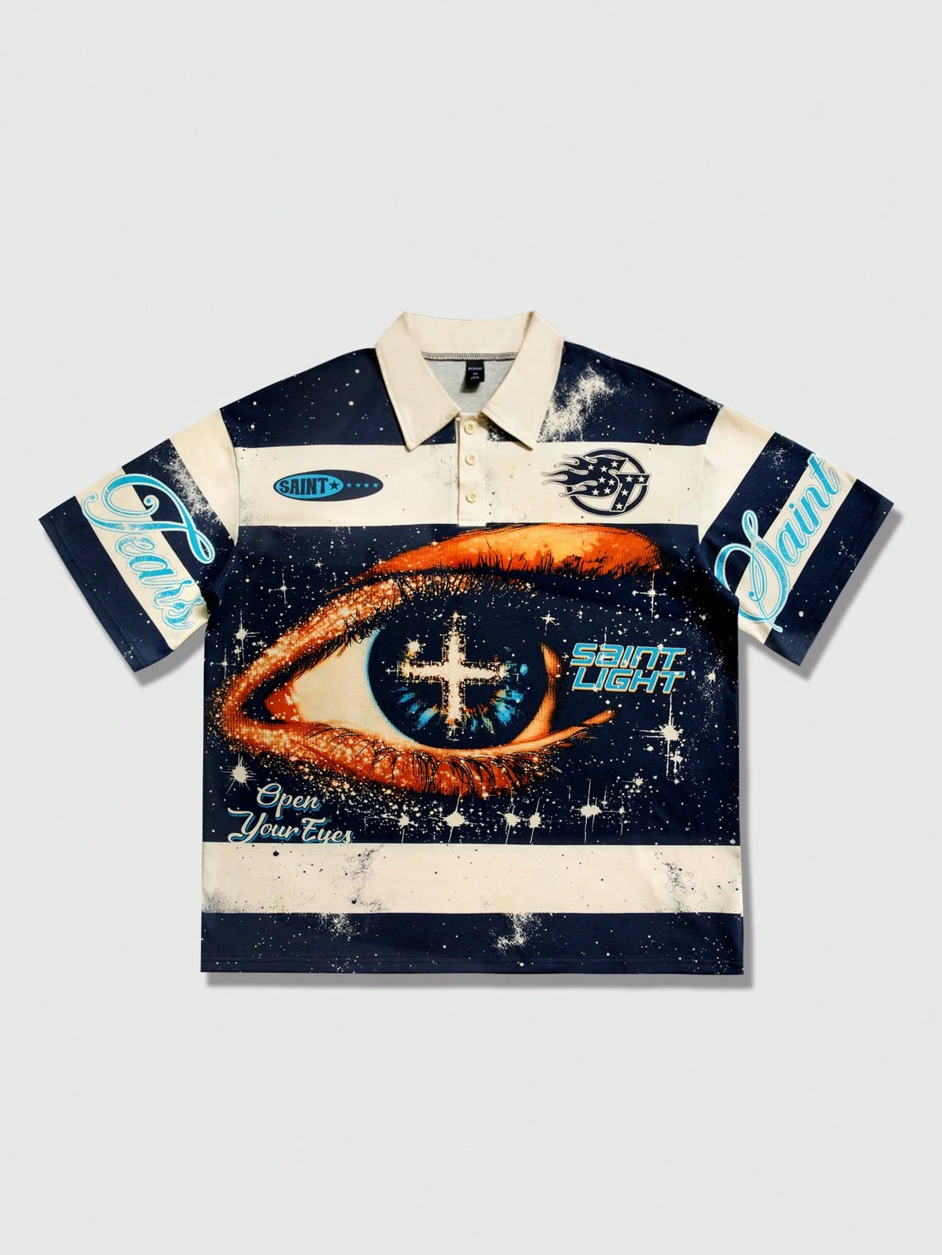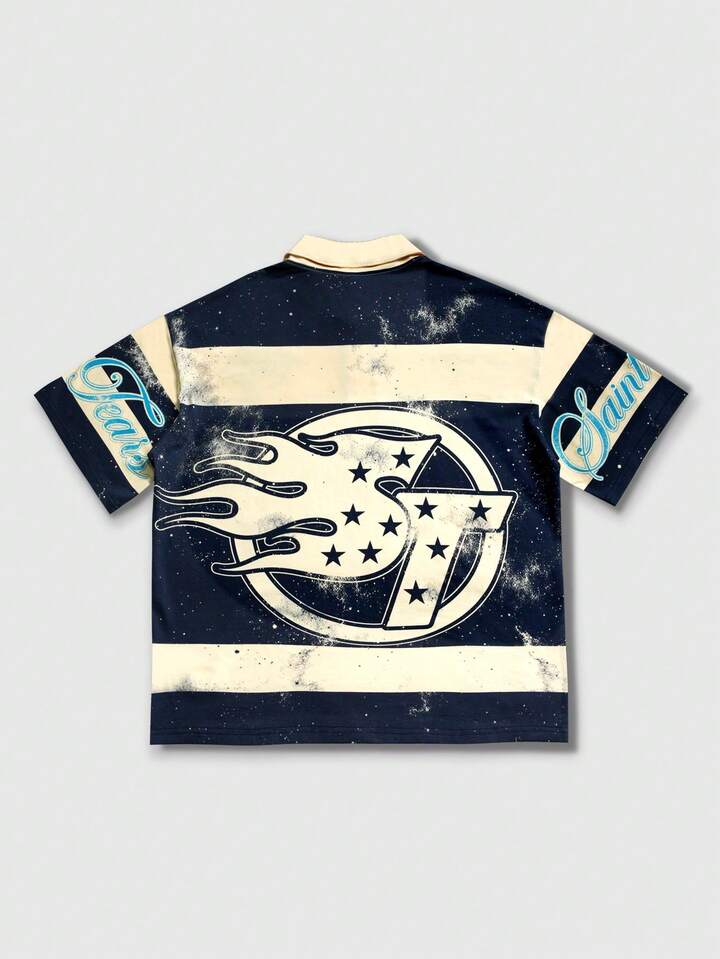 Unisex Polo Collar Striped Short Sleeve T-Shirt