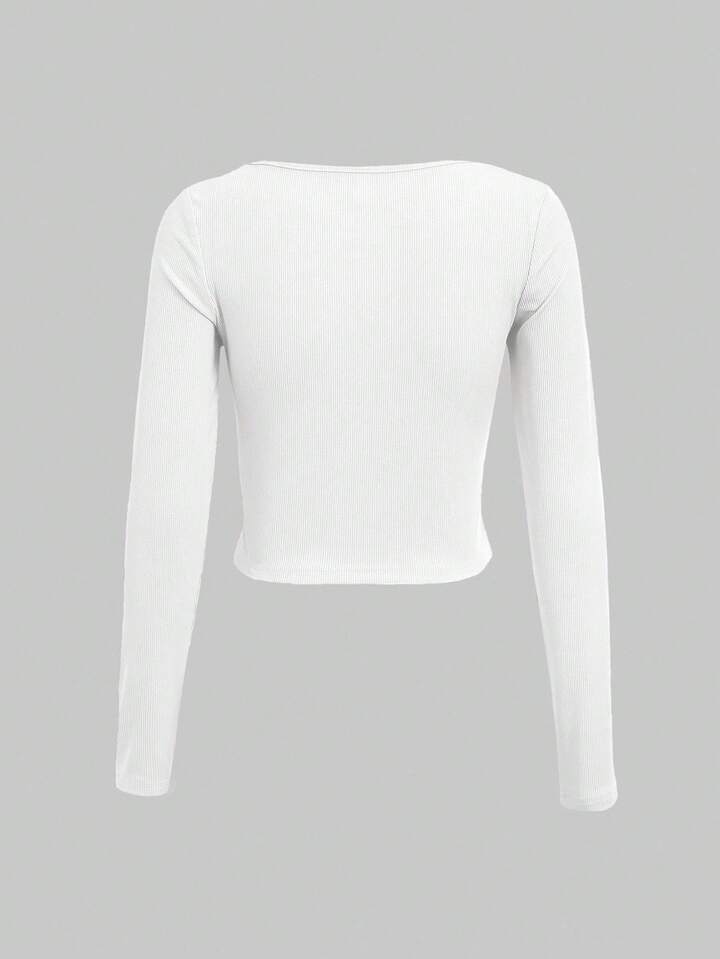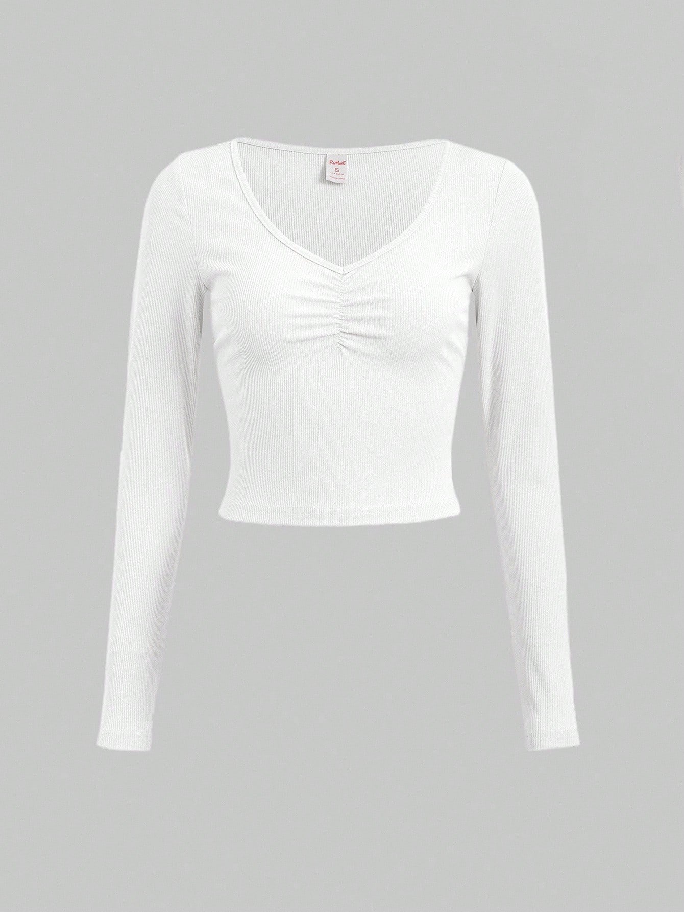 V-Neck Casual Slim Fit Ribbed Long Sleeve T-Shirt