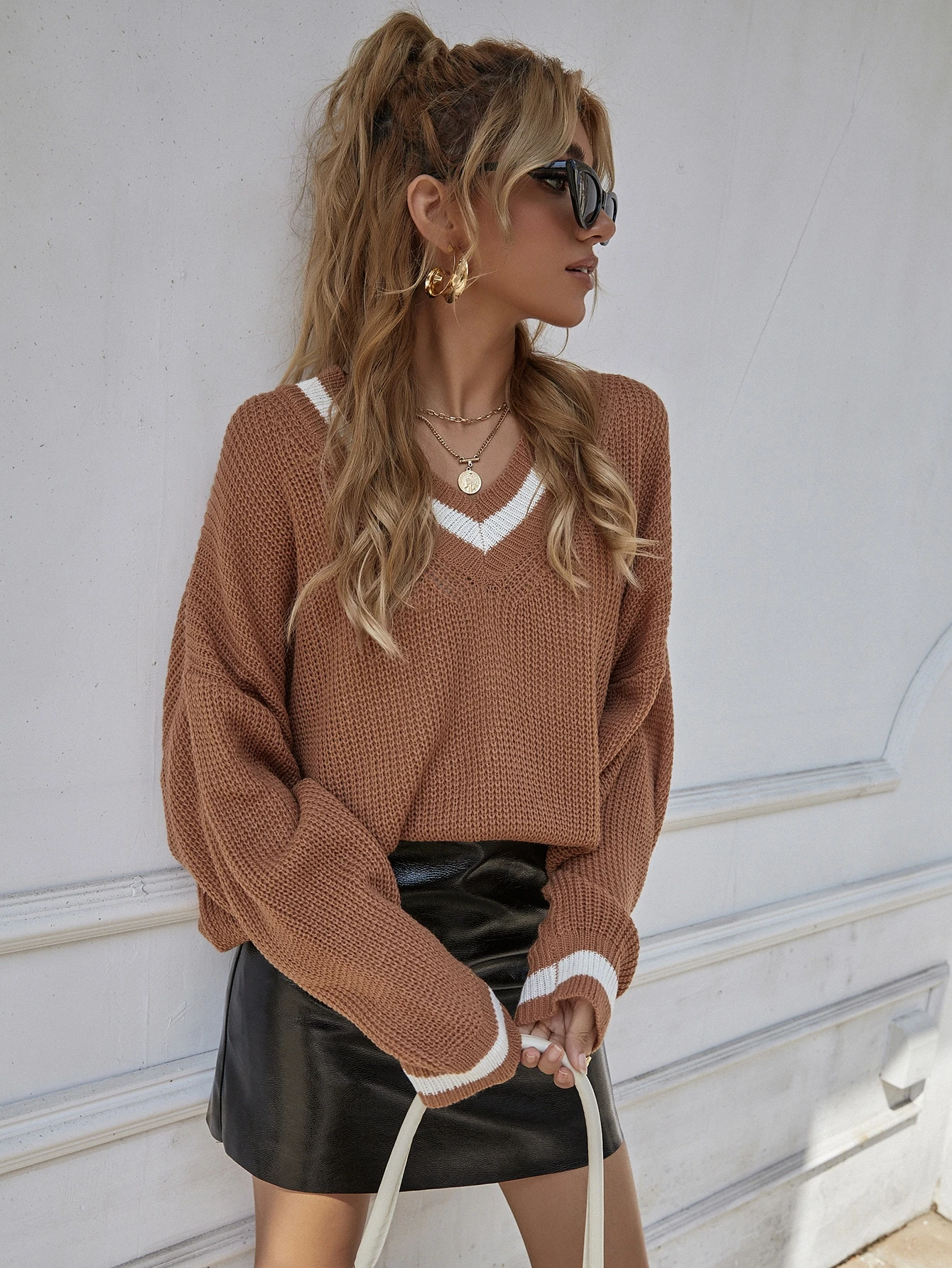 V Neck Striped Batwing Sleeve Oversized Sweater