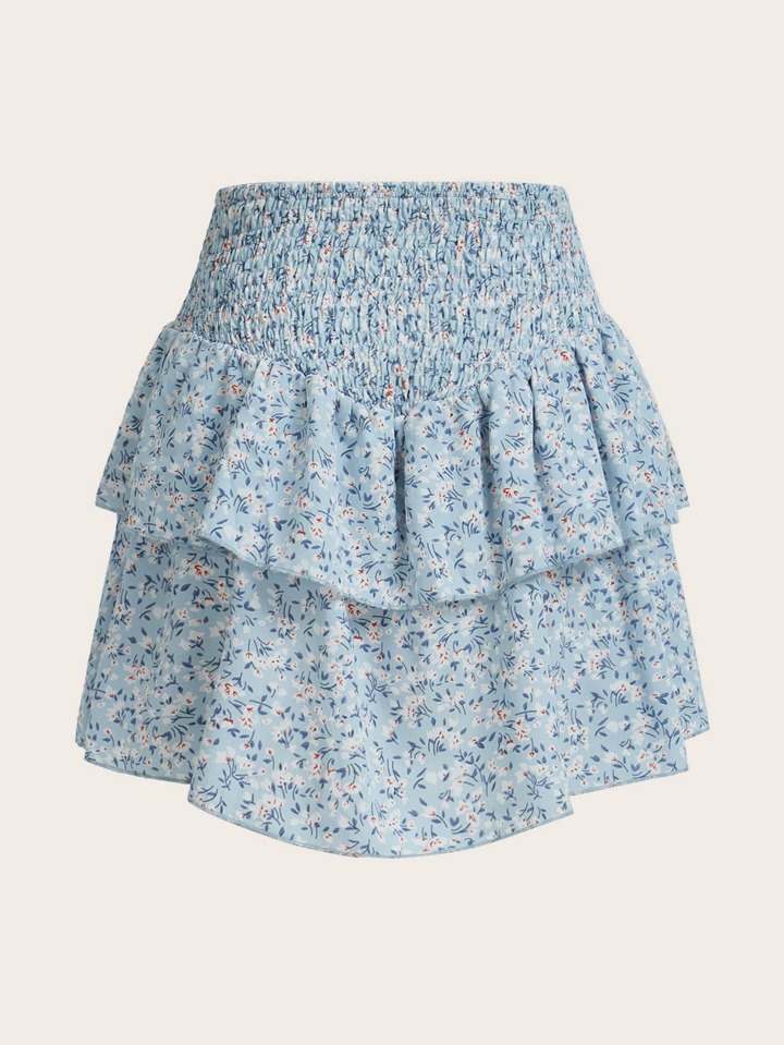 Vacation Style Casual Ditsy Floral Ruffle Hem Skirt