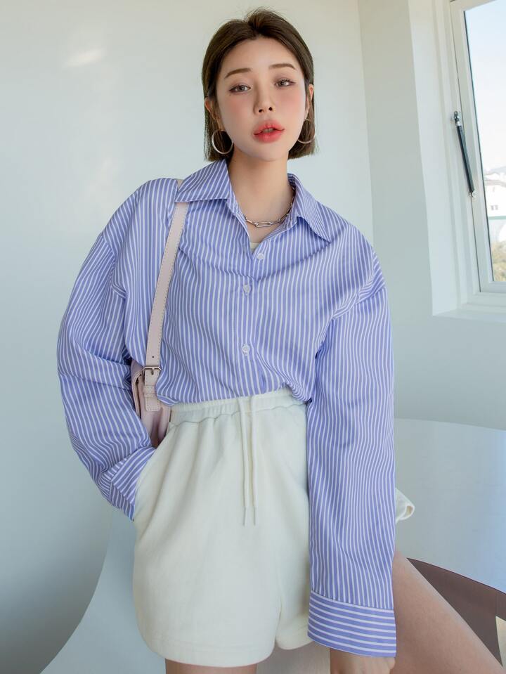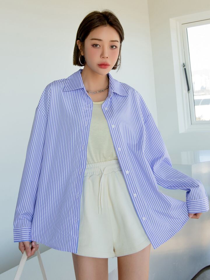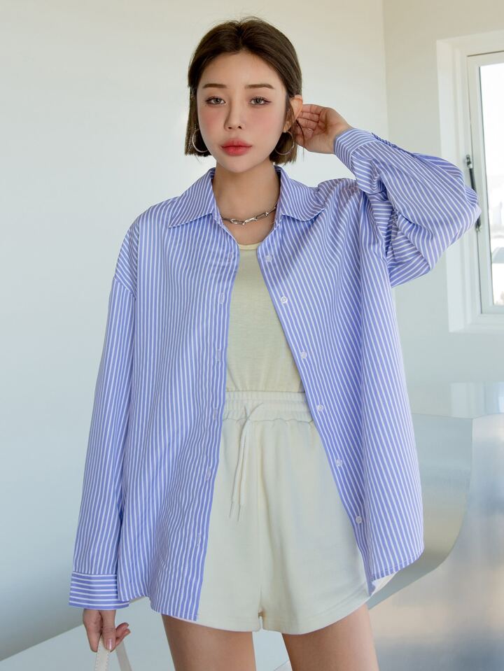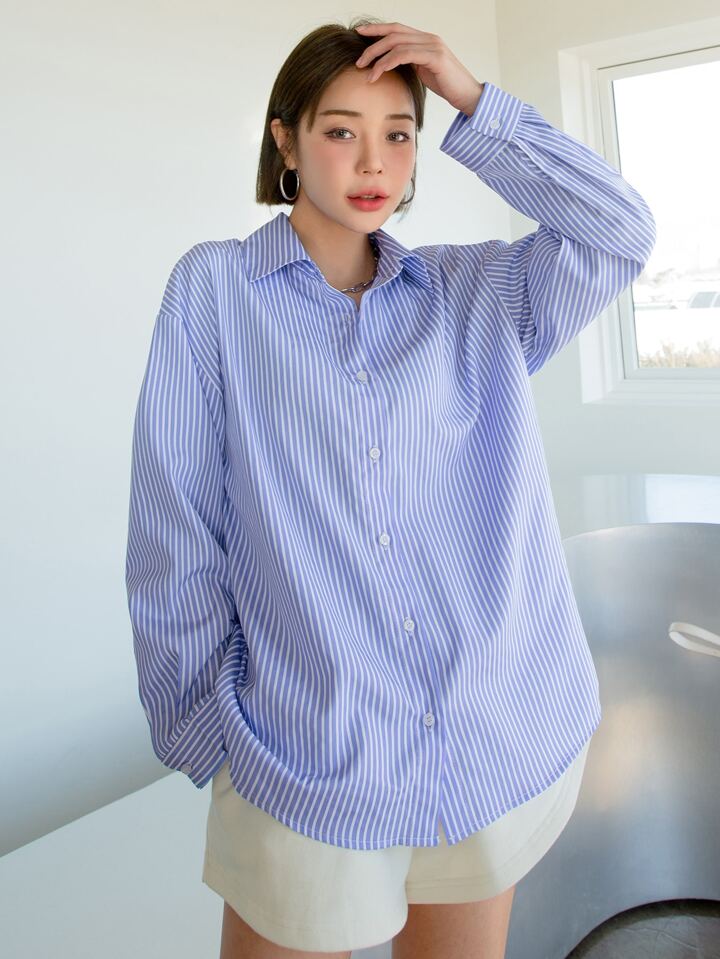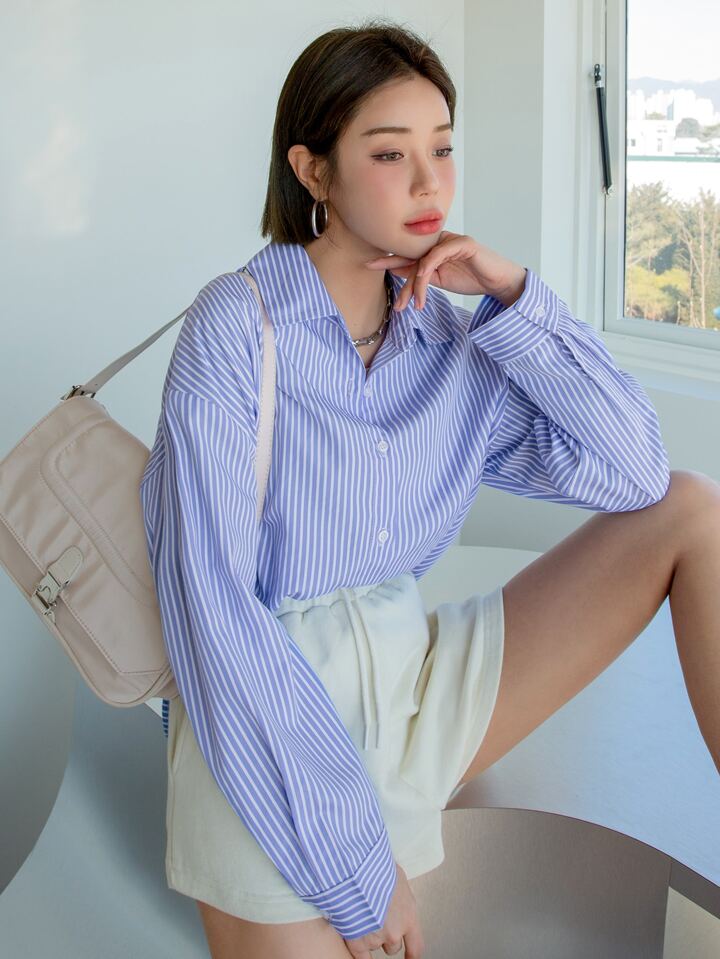 Vertical Striped Drop Shoulder Shirt,Fall Clothes Preppy Tops Long Sleeve Top