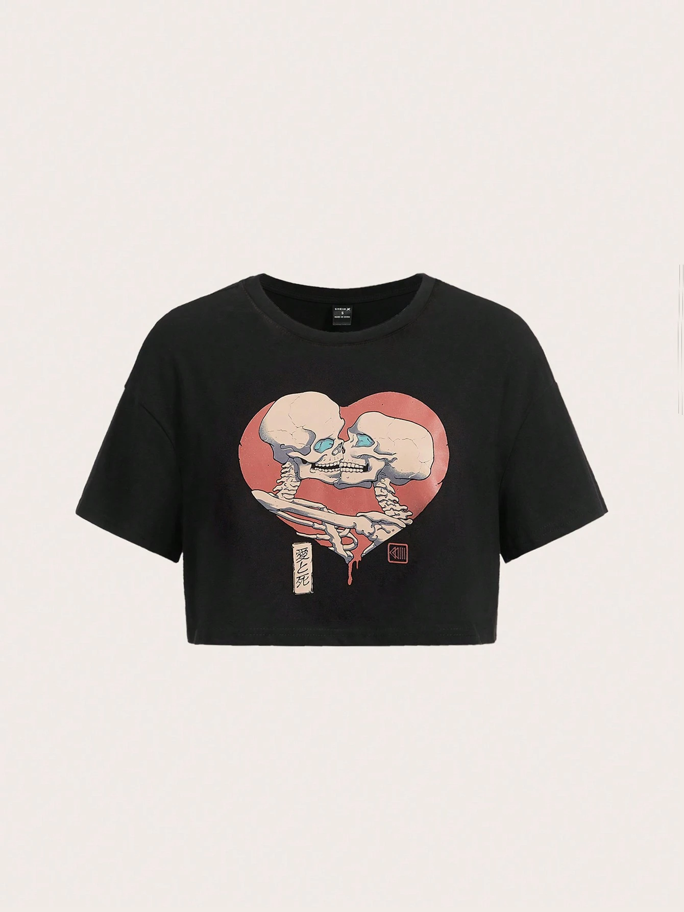 Vincenttrinidadart J-Fashion Heart & Skull Graphic Crop Tee