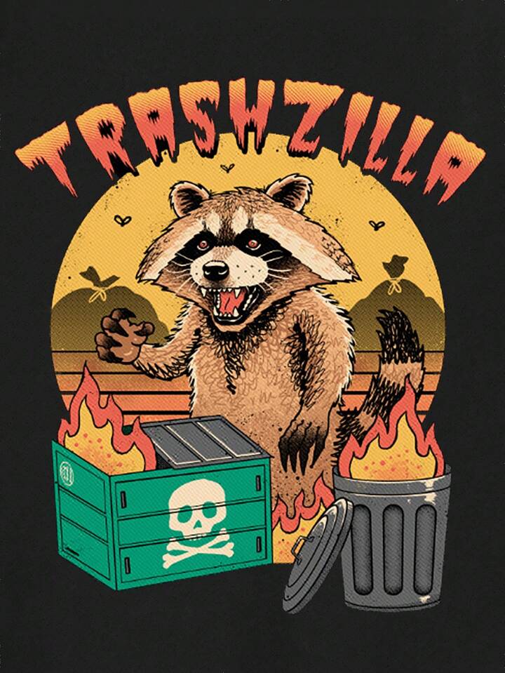Vincenttrinidadart Women's Summer Casual Round Neck Short Sleeve Letter & Raccoon Print T-Shirt
