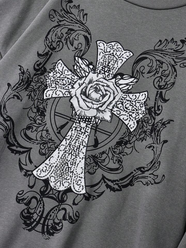 Vintage Rose Pattern Thickened Crew Neck Sweatshirt