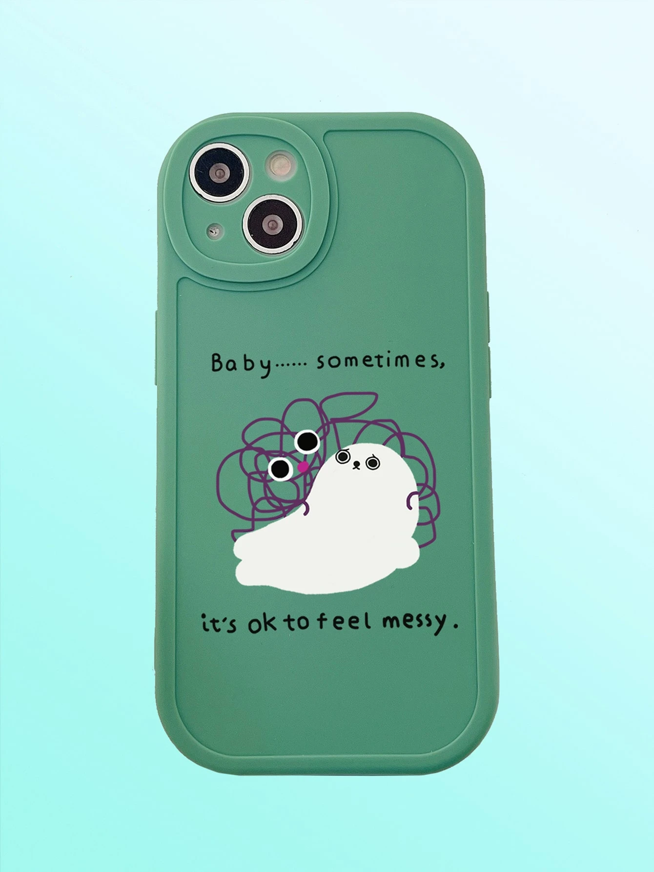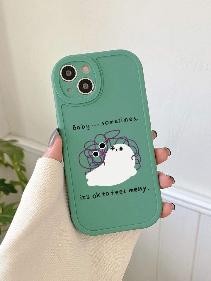 Wang xx Slogan & Cartoon Graphic Phone Case
