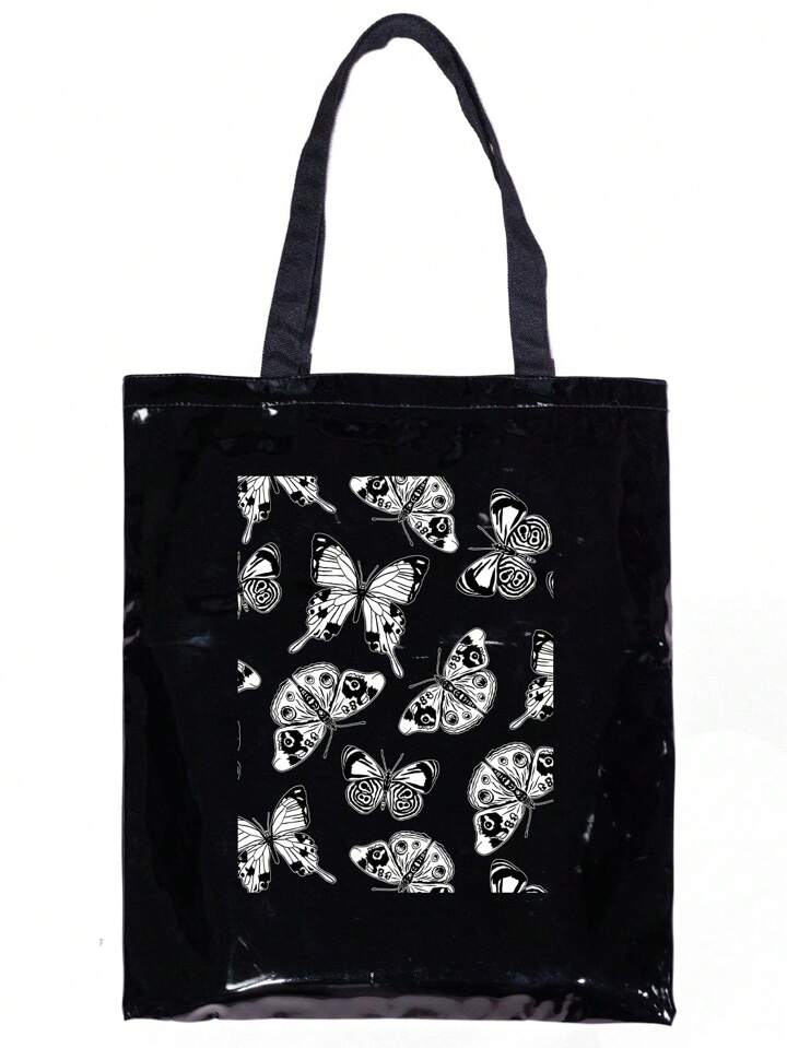 Warp Atelie Fairycore Small Shopper Bag Dark Butterfly Graphic For Shopping