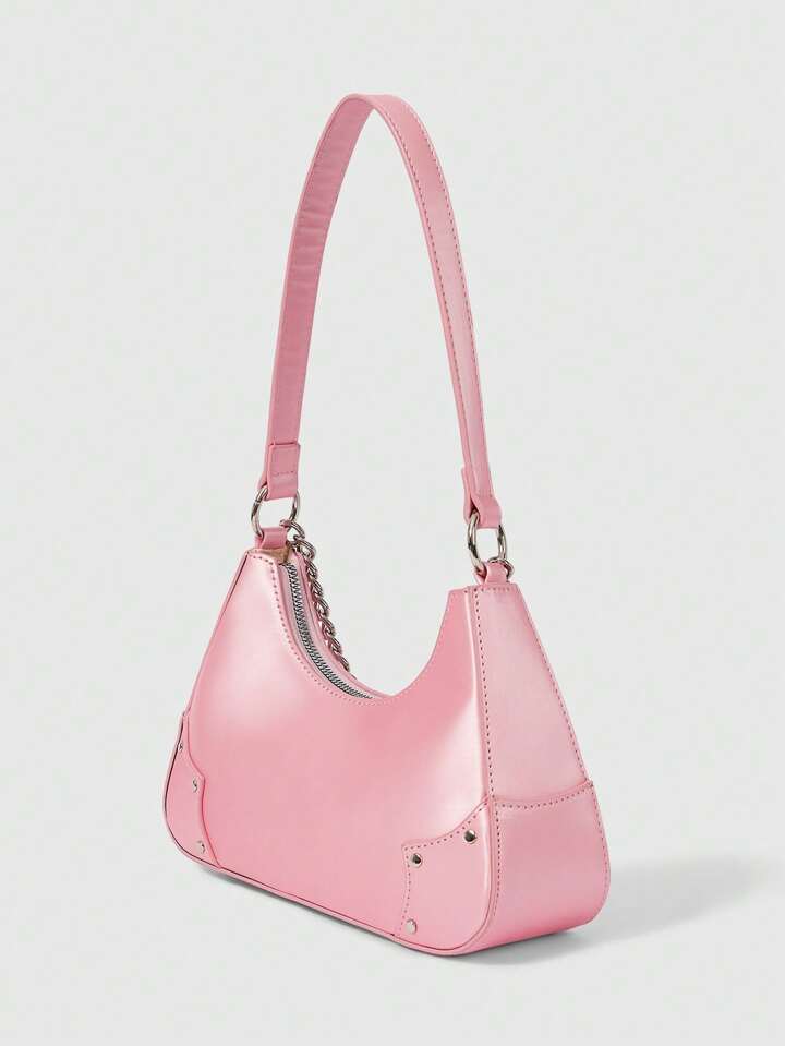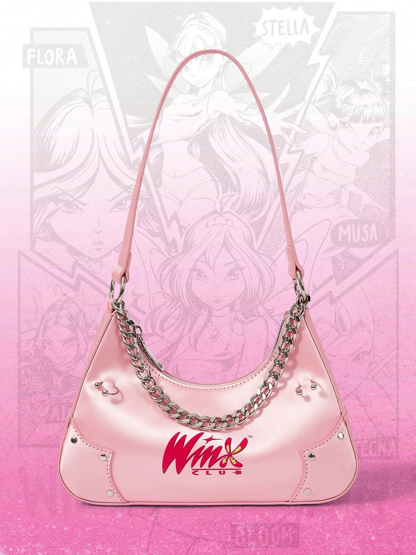 Winx Club X ROMWE Glam Satin Studded Chain Crossbody Bag - Adjustable Y2K Glossy Shoulder Bag For Concerts, Party Outfits & Daily Street Style