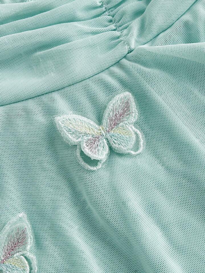 Women Asymmetric Mesh Butterfly Decor Skirt, Spring