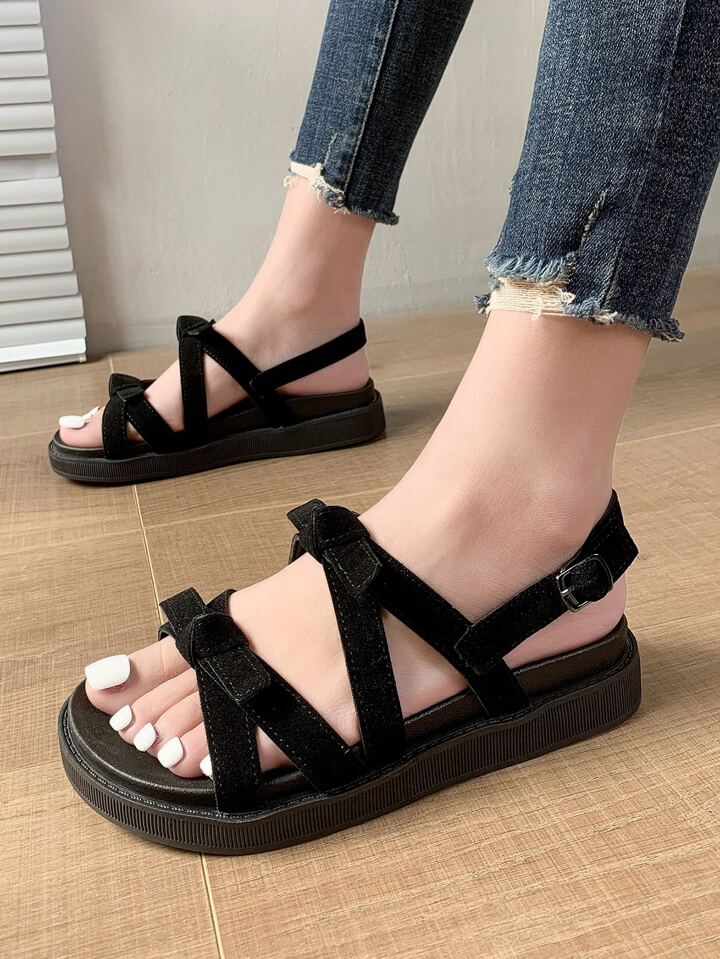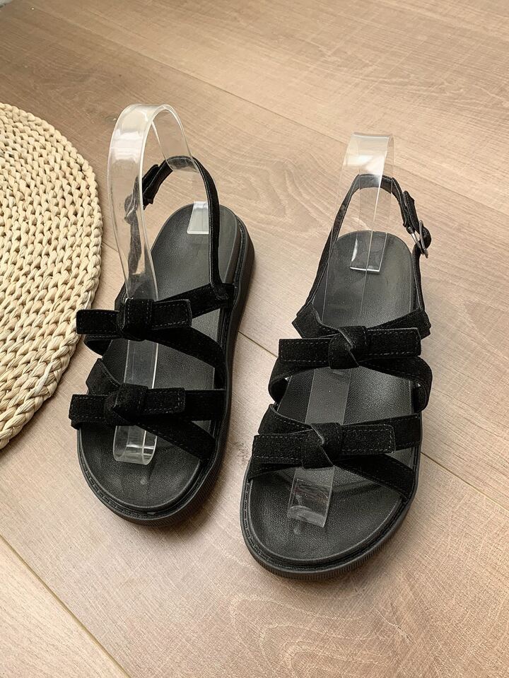 Women Bow Decor Slingbacks, Fashion Flat Sandals Black