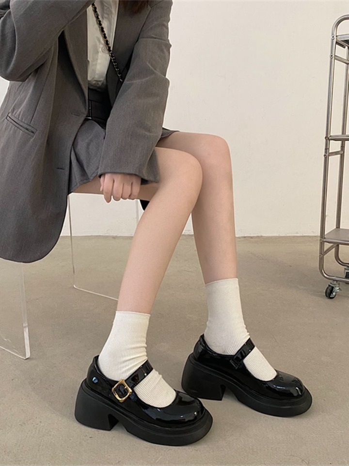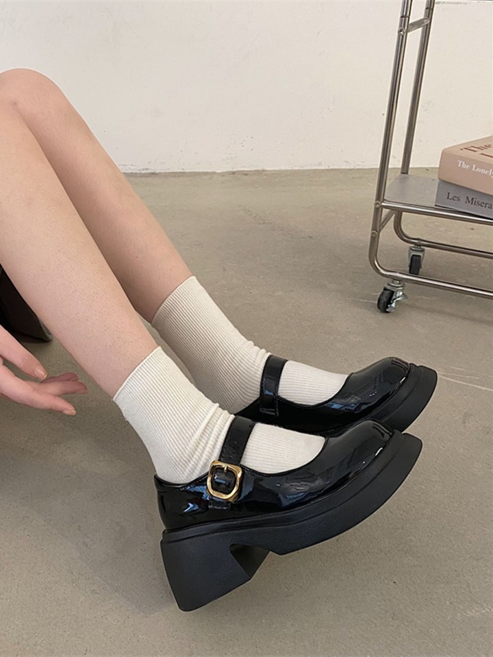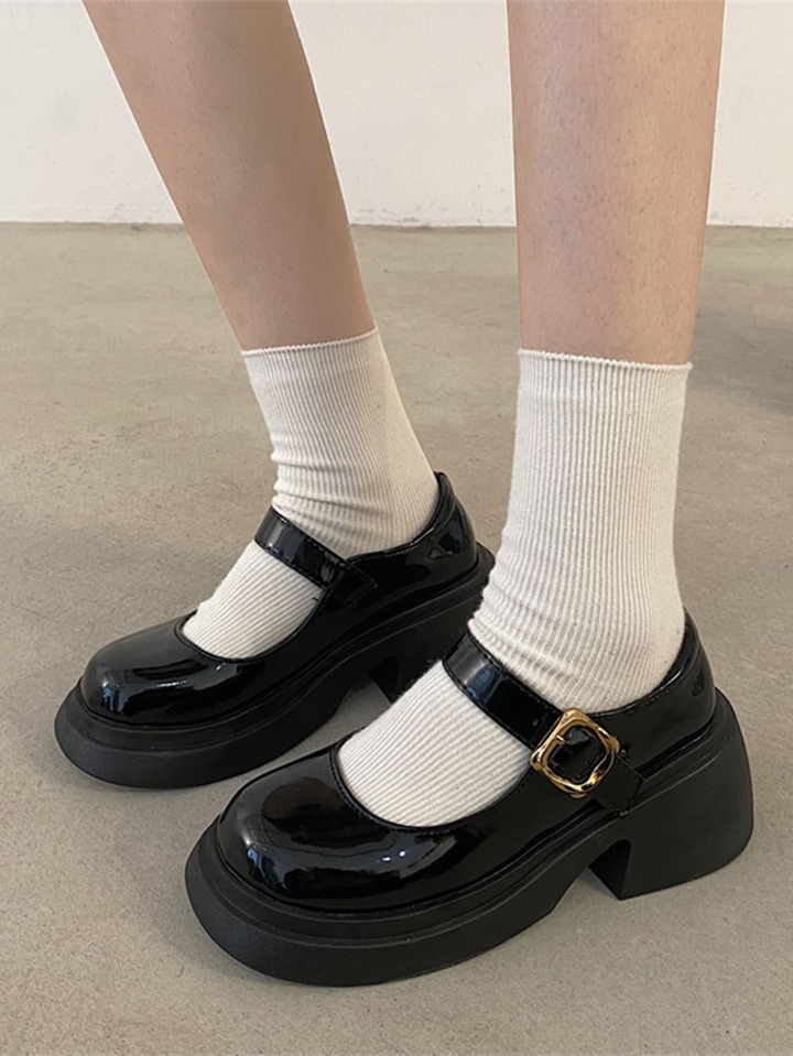 Women Buckle Decor Flatform Shoes, Preppy Black Mary Jane Shoes