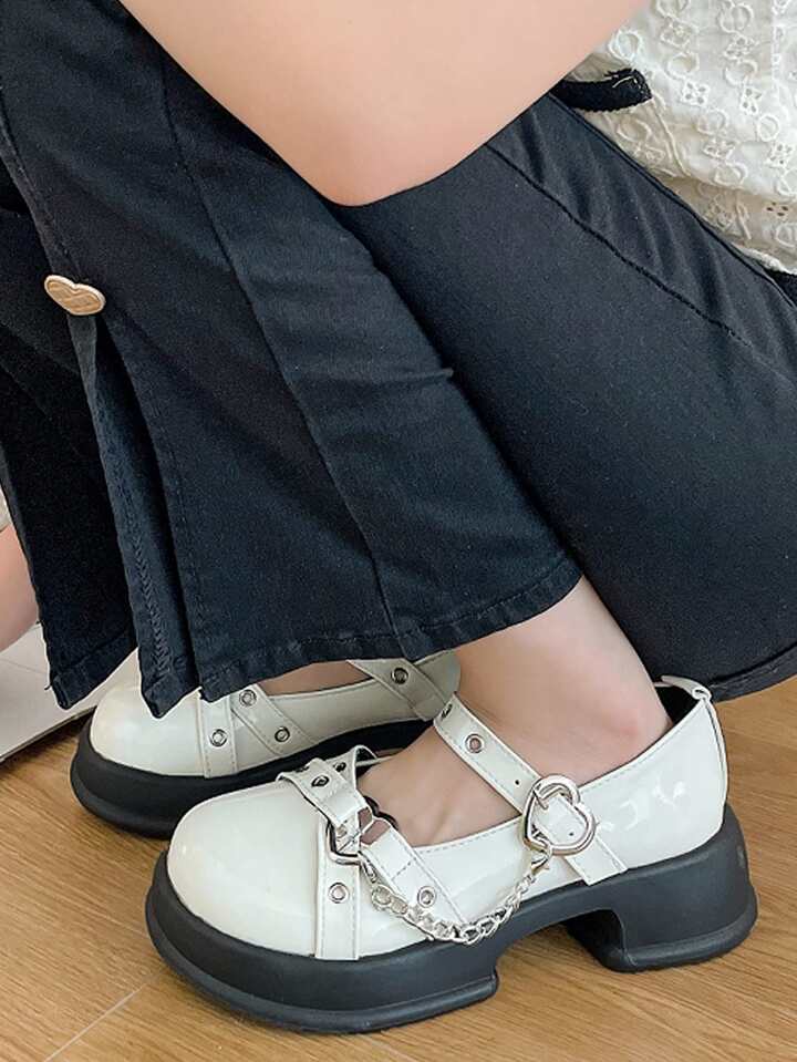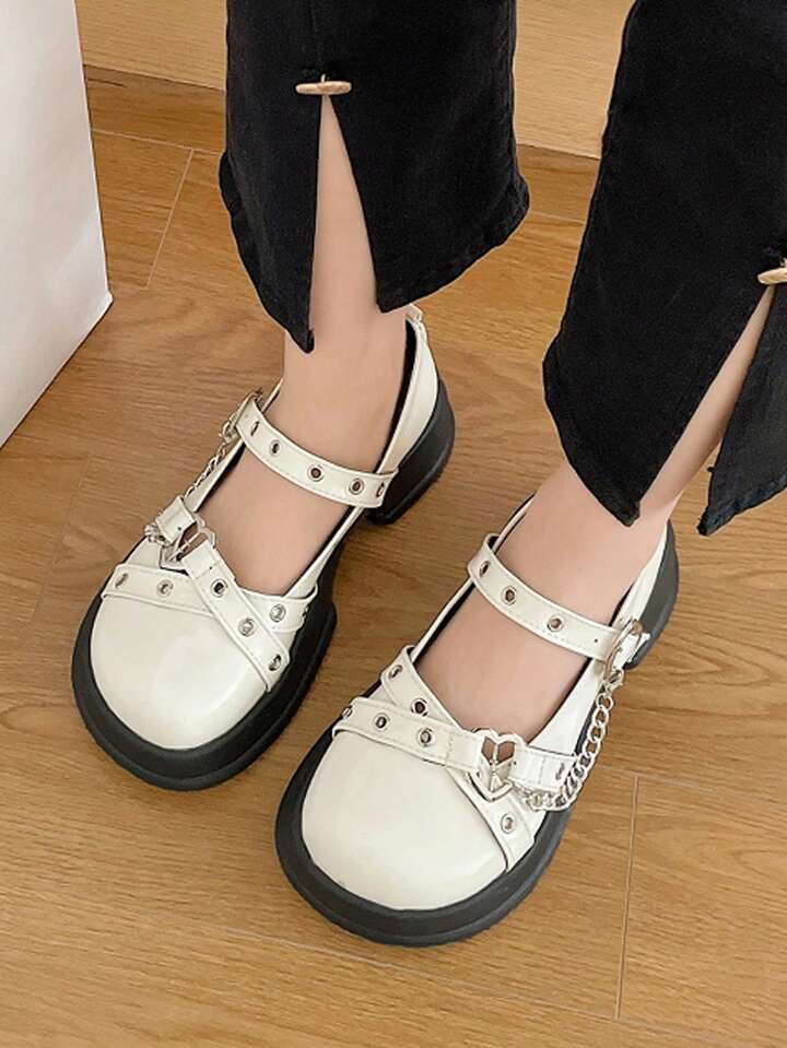Women Chain Decor Flatform Mary Jane Shoes, Fashion Outdoor Flatform Shoes