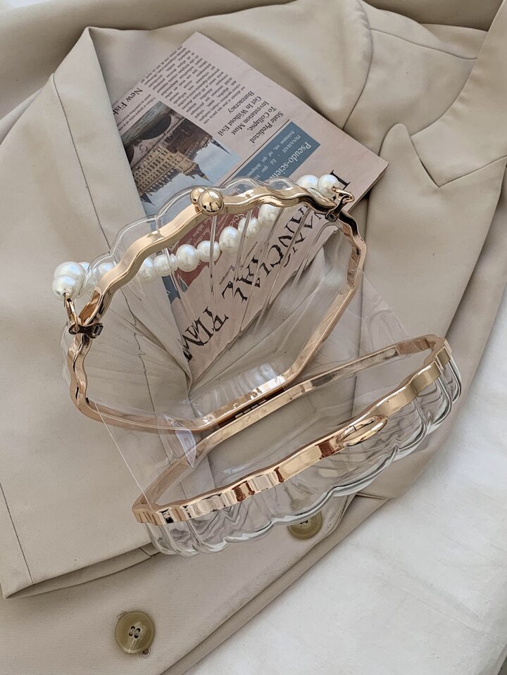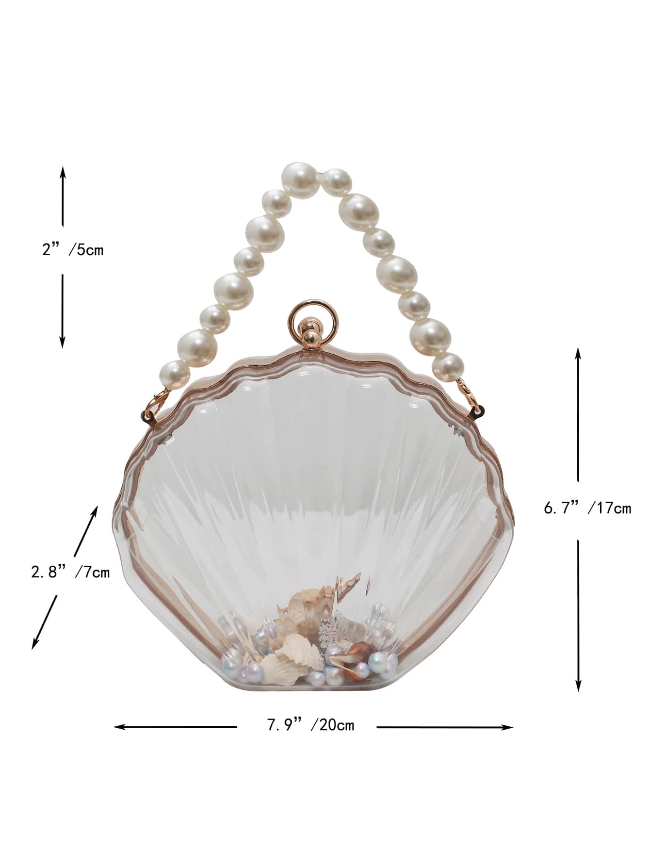 Women Clear Acrylic Shell Chain Crossbody Bag - Niche Design Novelty Purse Mini Clear Faux Pearl Decor Dome Bag