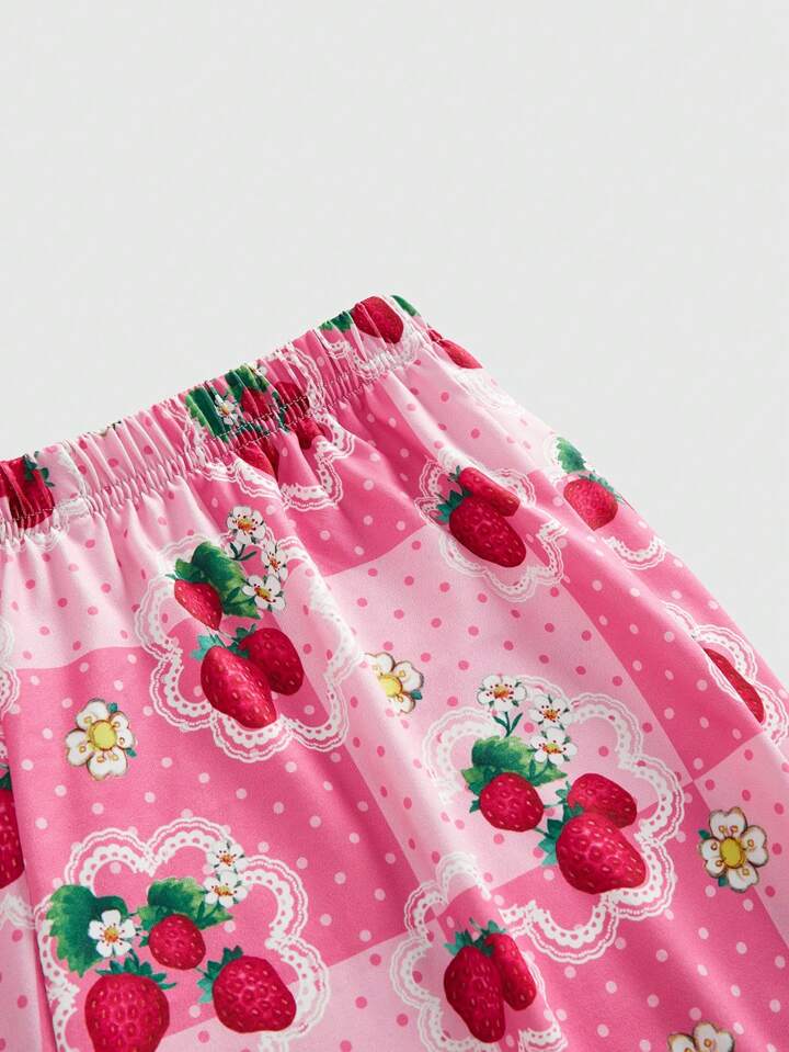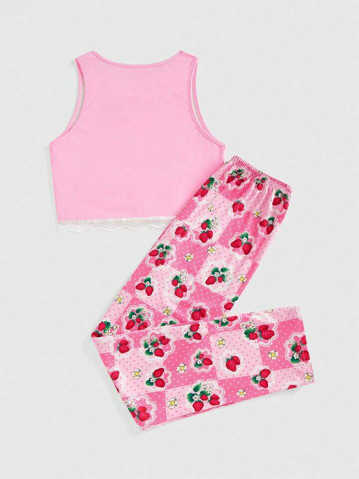 Women Cute Casual Strawberry Cartoon Figure Graphic Tank Top And Pants Pajama Set