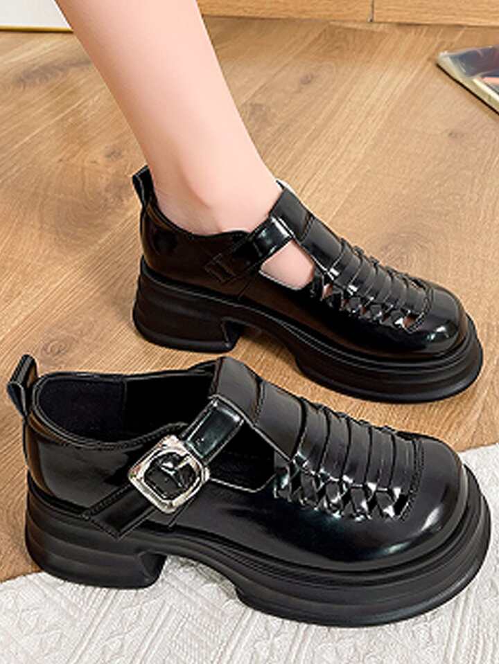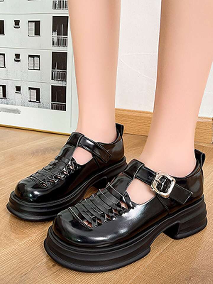 Women Hollow Out Platform Mary Jane Shoes, Elegant Black Wedge Shoes