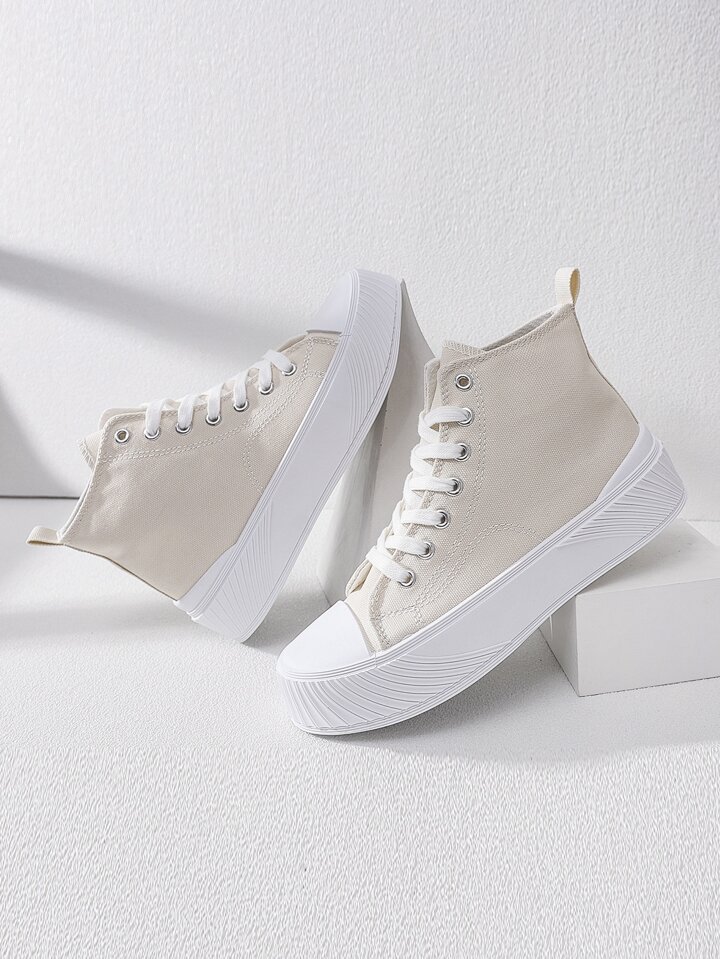 Women Lace Up High Top Canvas Shoes, Sporty Outdoor Sneakers