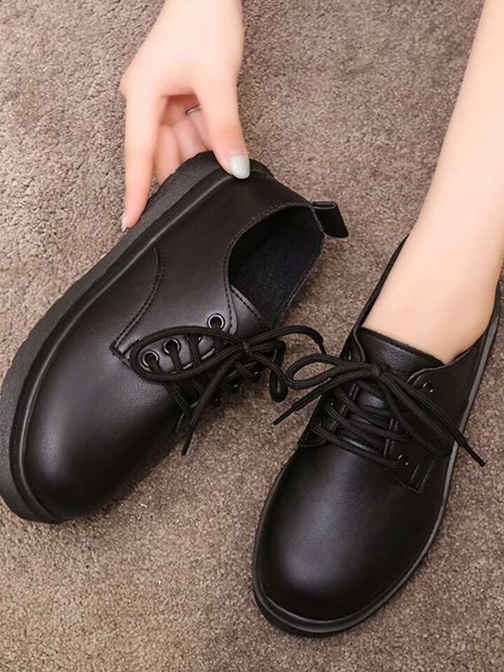 Women Lace Up Oxford Shoes, Cool Black Flatform Shoes