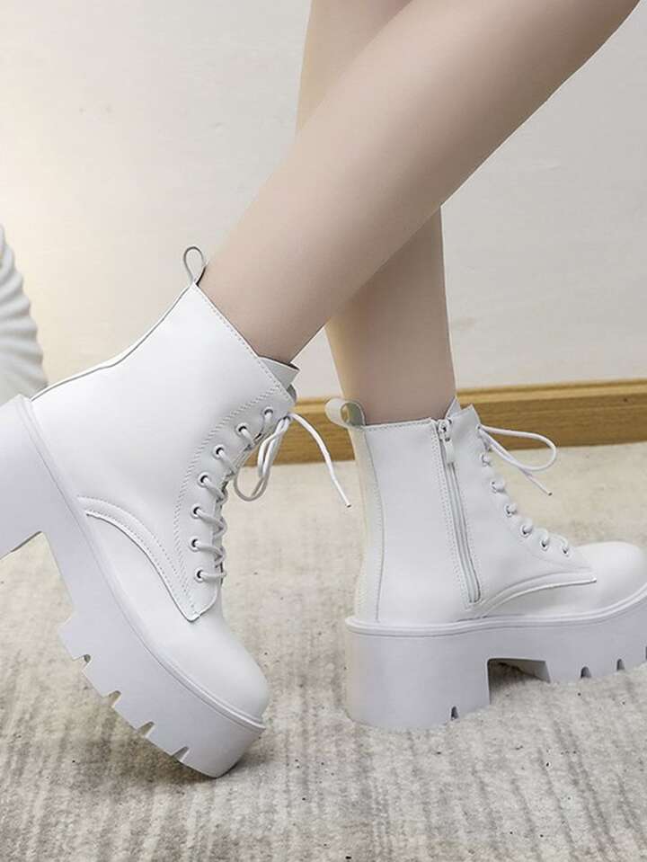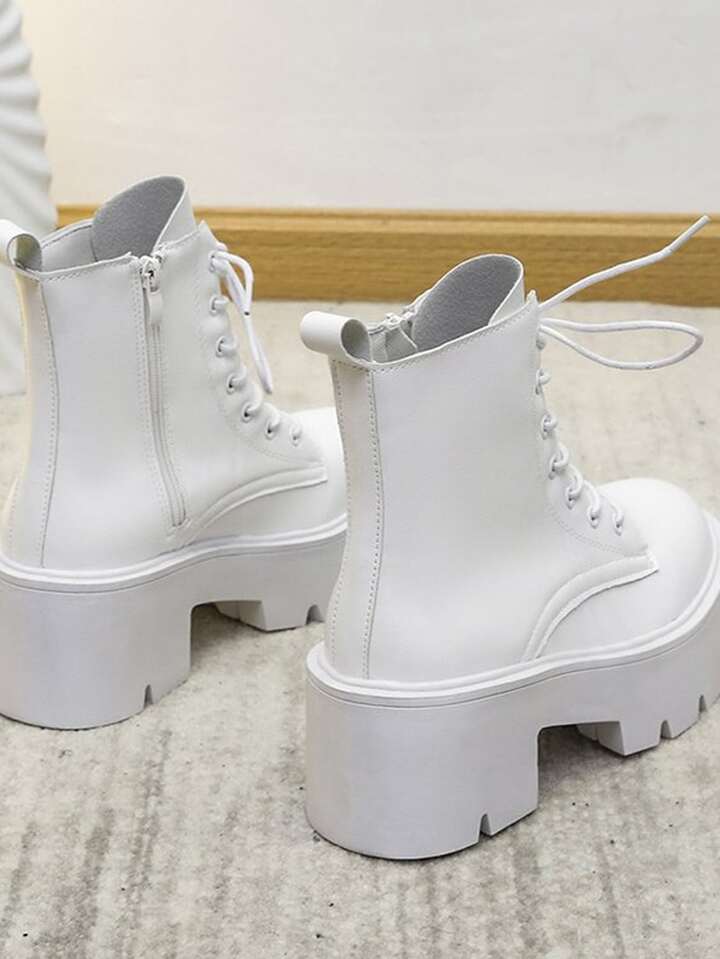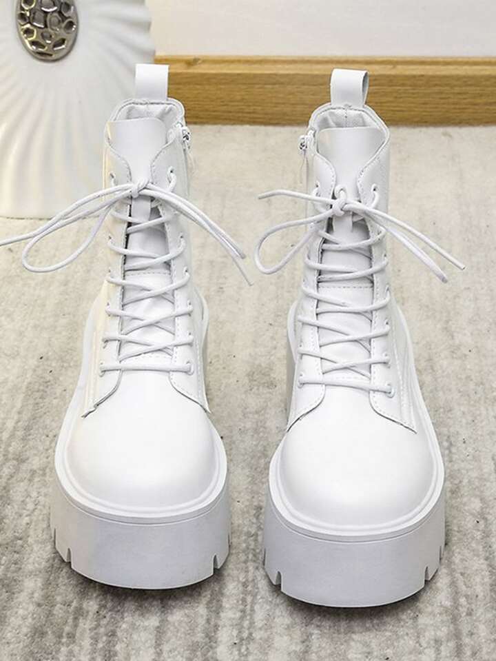 Women Lace-up Front Fashion Boots Fashion White Combat Boots