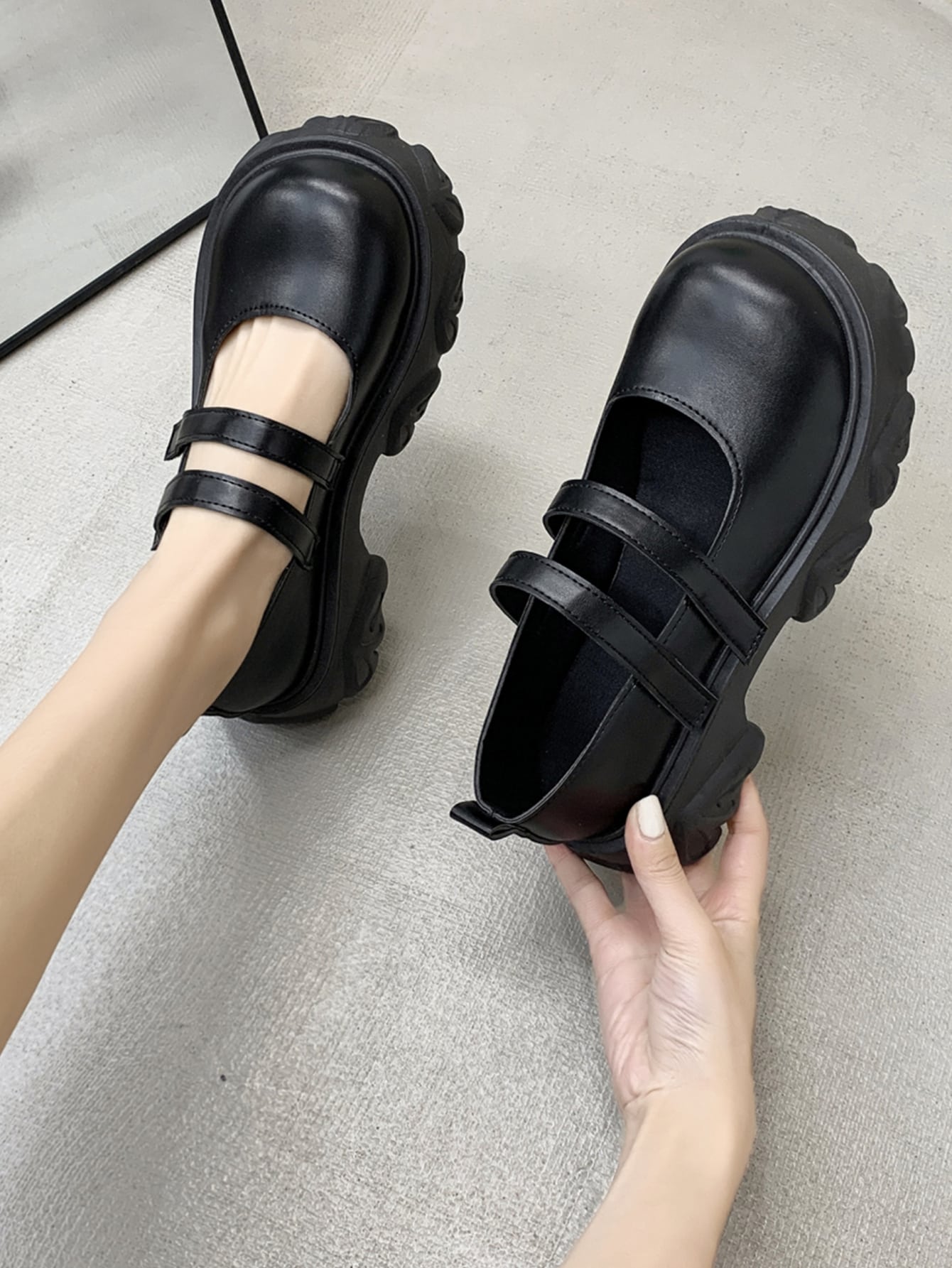 Women Minimalist Mary Jane Shoes, Preppy Black Flatform Shoes