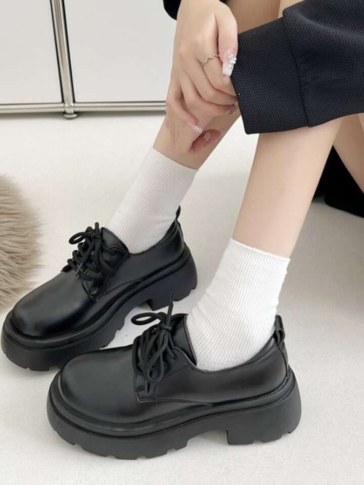 Women Oxfords, Lace-up Front Preppy Flatform Shoes Black