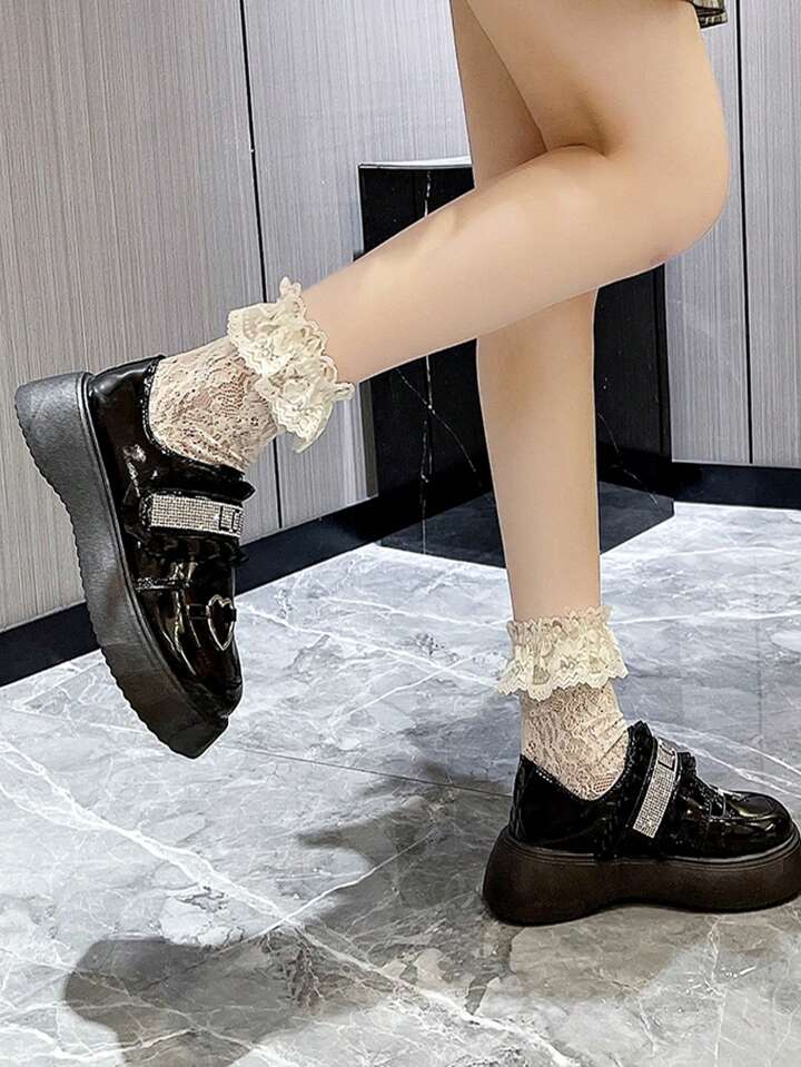 Women Rhinestone & Heart Decor Loafers
