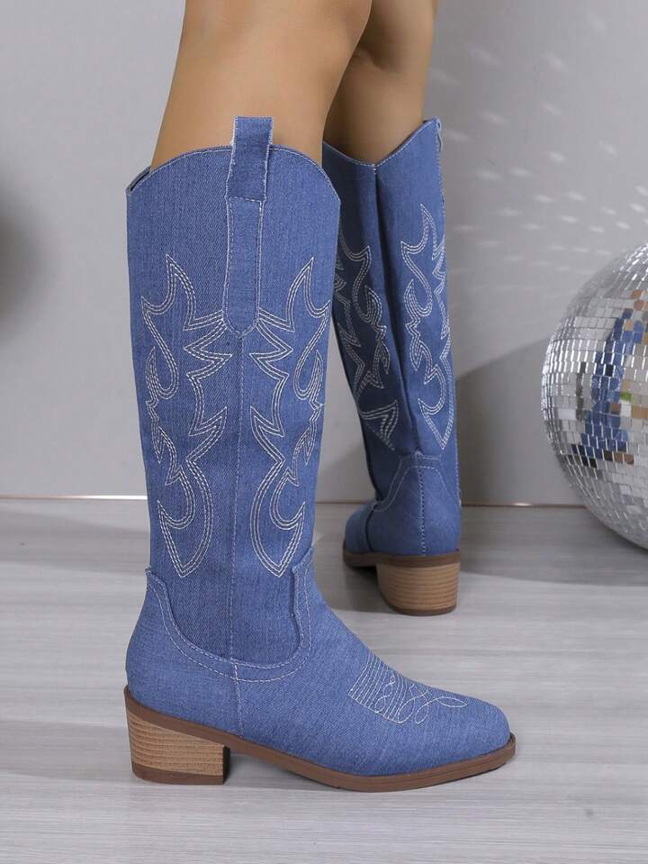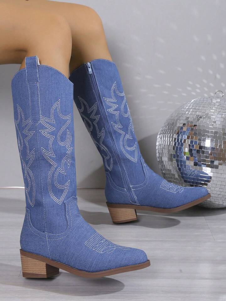 Women'S Blue Stylish Knee-High Boots