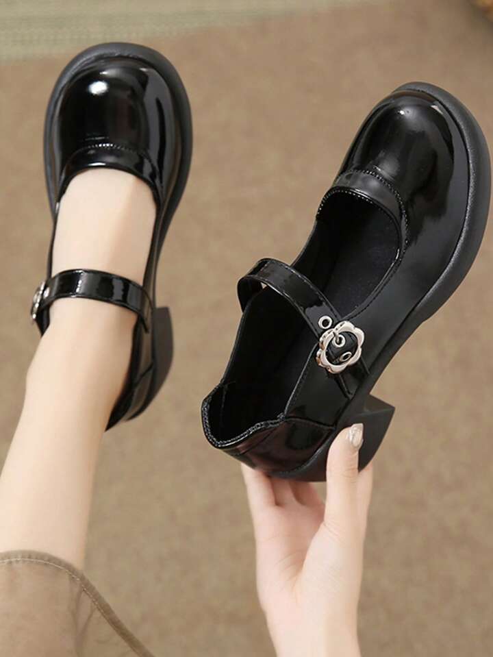 Women Solid Round Toe Mary Jane Pumps, Preppy Outdoor Pumps