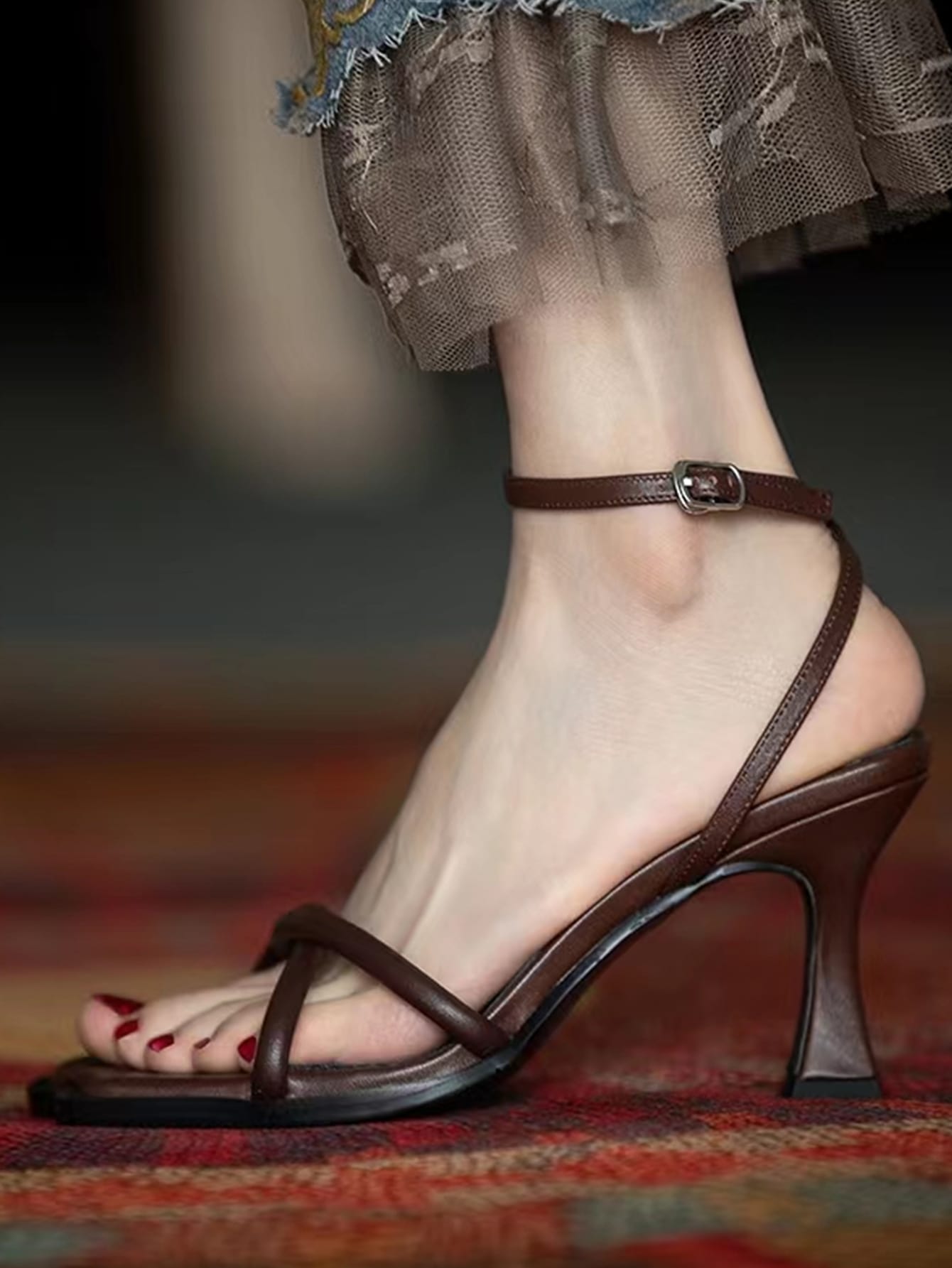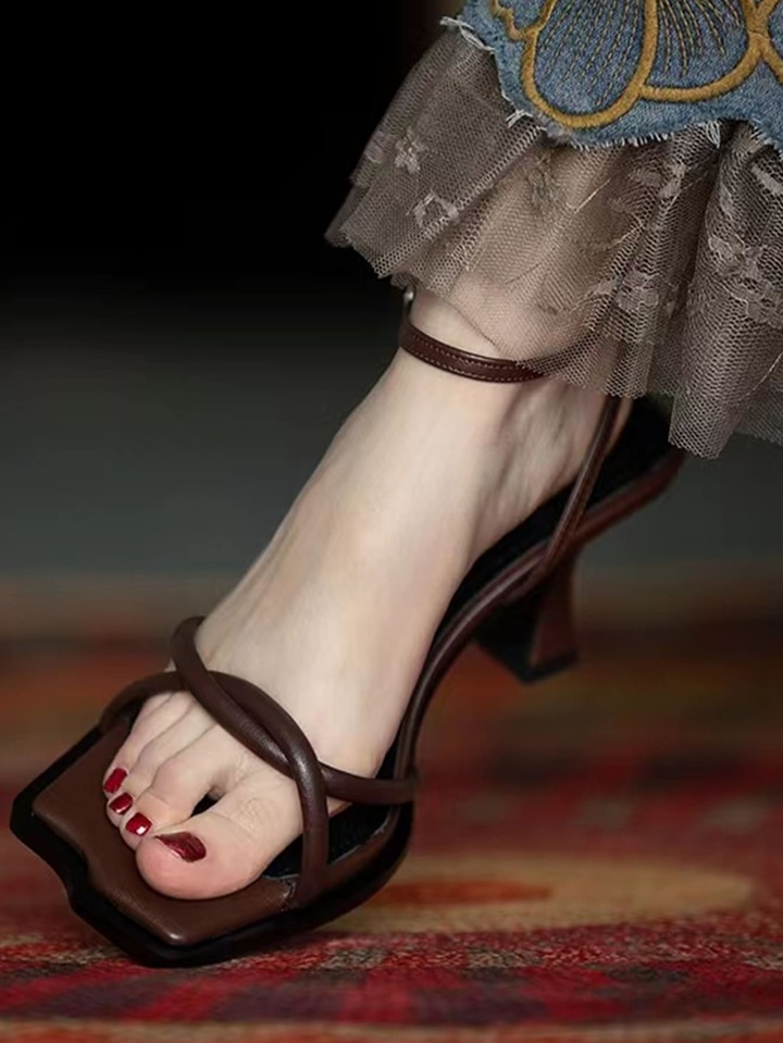 Women Twist Decor Ankle Strap Pyramid Heeled Sandals, Elegant Brown Heeled Sandals