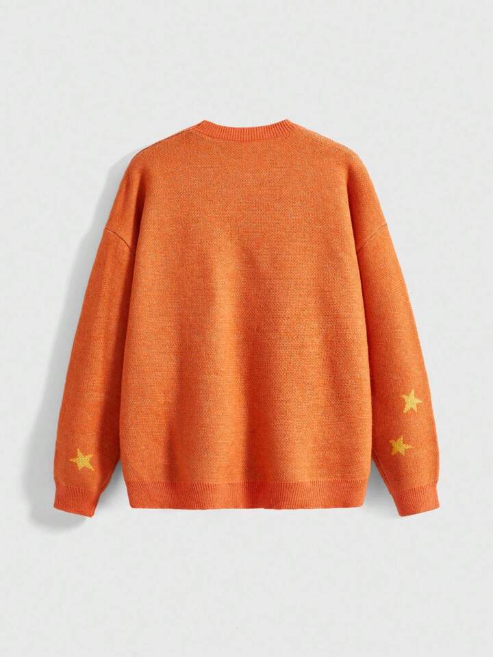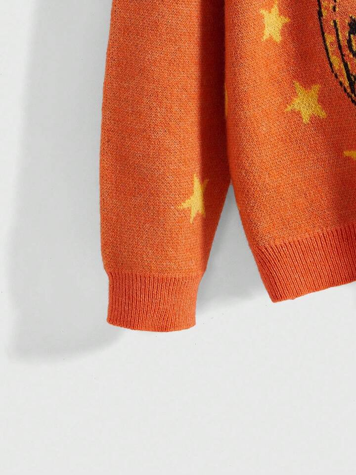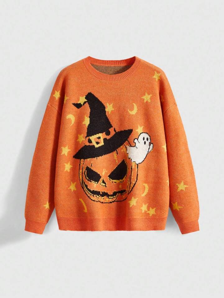 Women's Autumn Halloween Pumpkin, Ghost, Star Pattern Jacquard Pullover Sweater
