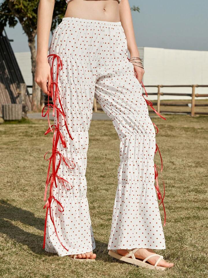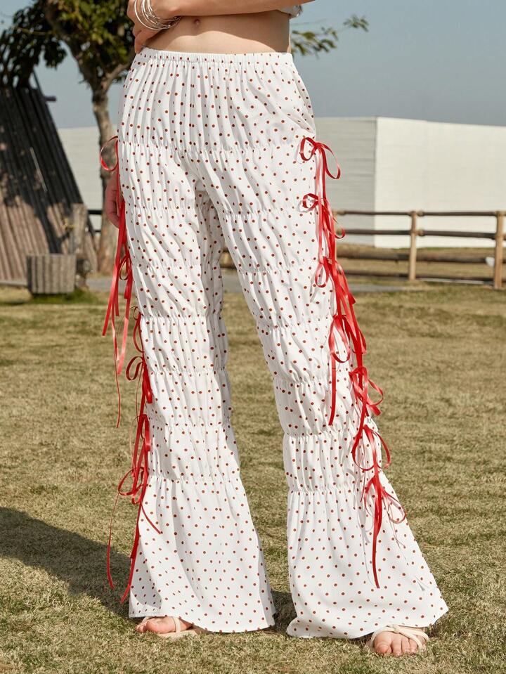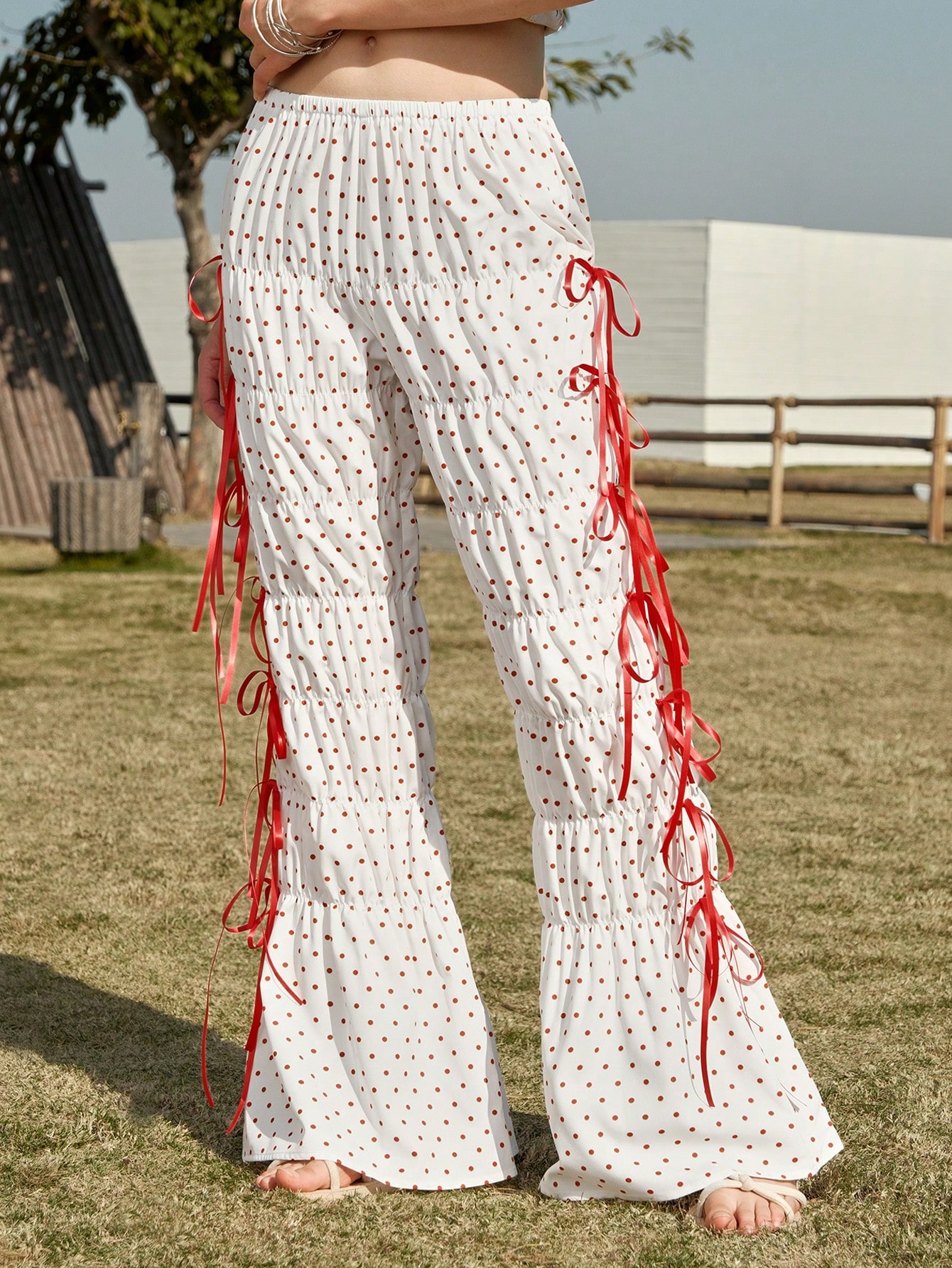 Women's Casual Bowknot & Polka Dot Ruched Trousers