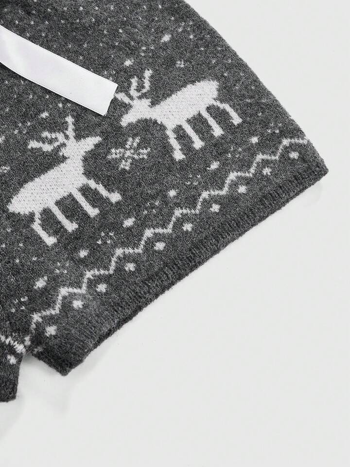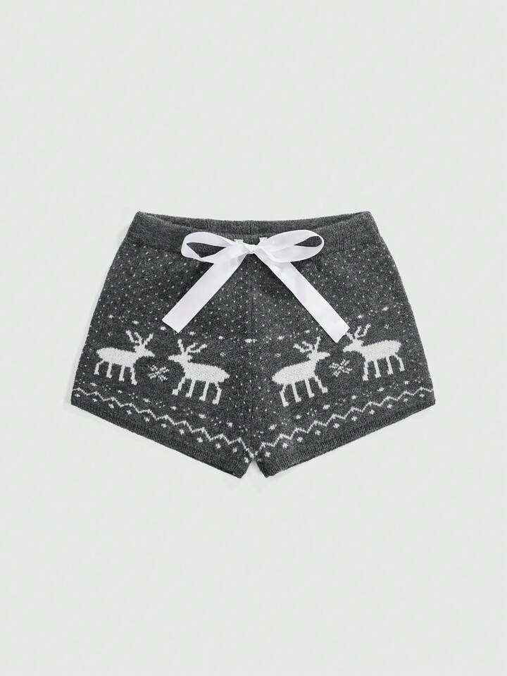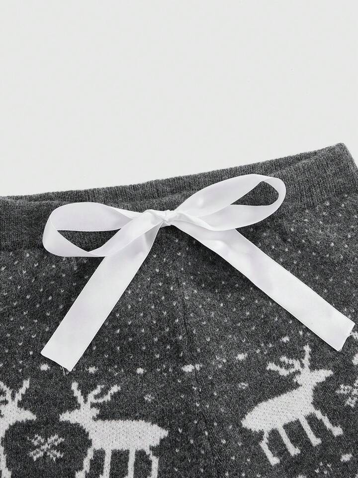 Women's Christmas Ribbon Tie Cute Deer Jacquard Super Low Waist Mini Sweater Pants