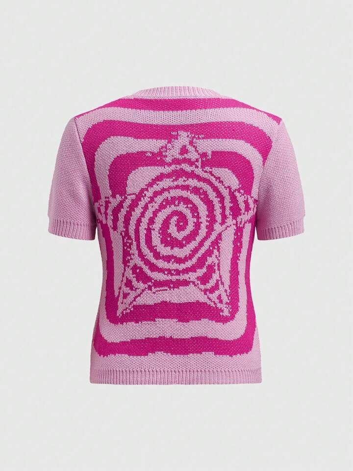 Women's Color Block Spiral Patterned Pullover Sweater With Five-Pointed Star Design