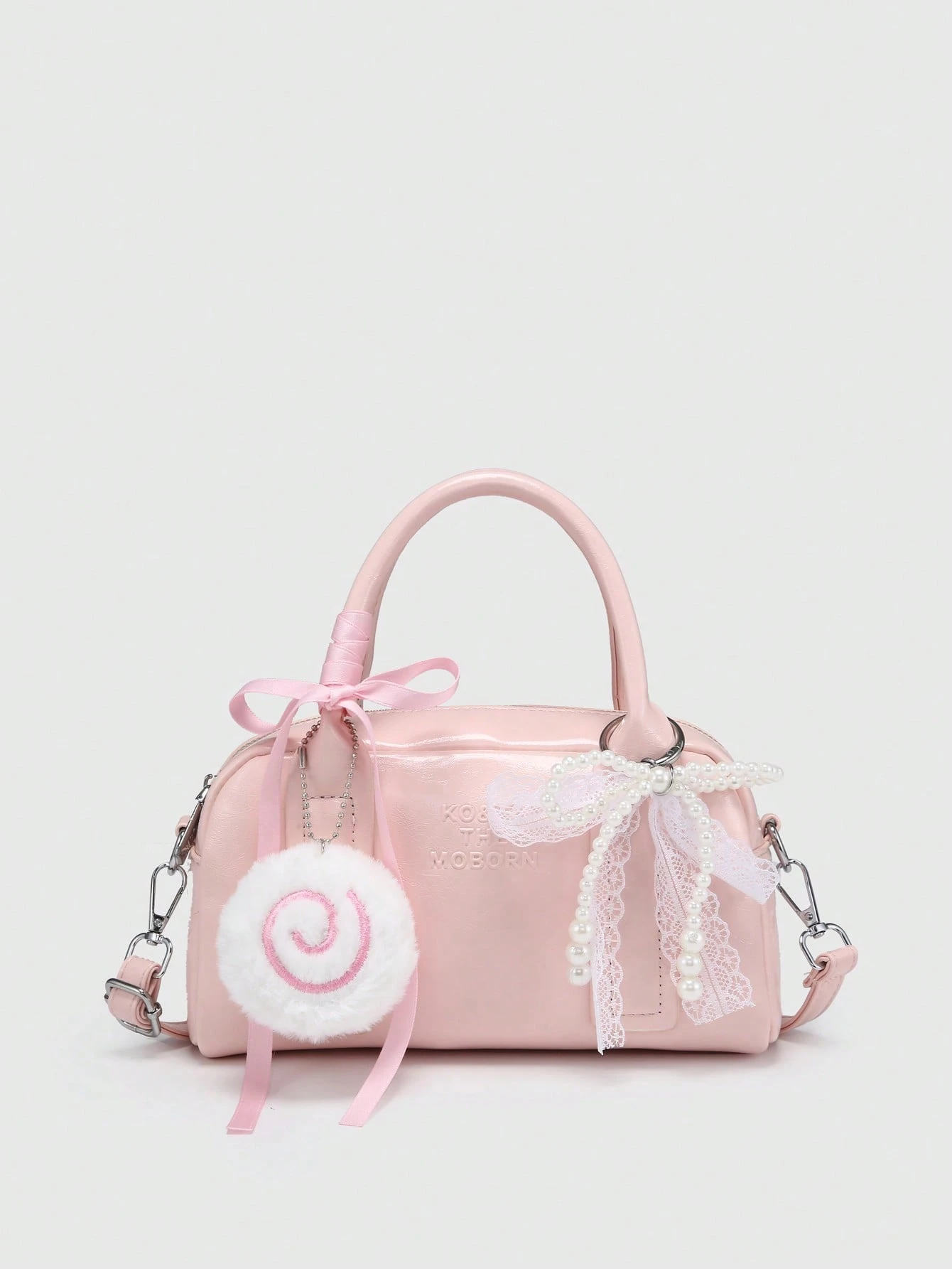 Women's Cute Ballerina Style Cherry Pearl Bow Decor Mini Handbag