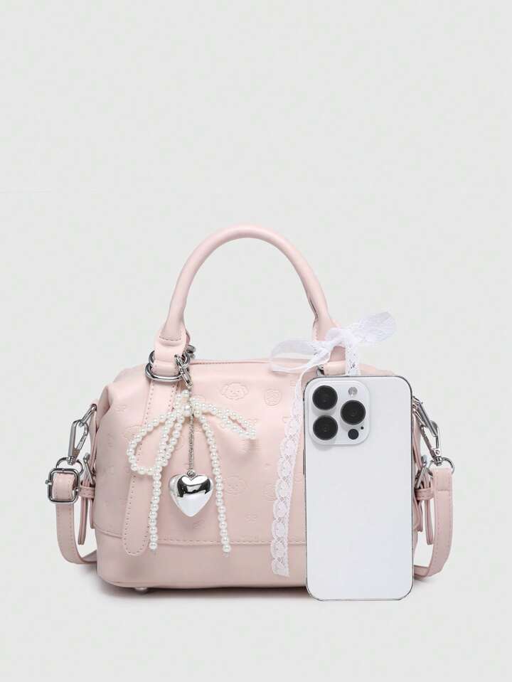 Women's Cute Ballet Style Cherry Pearl Bow Decor Mini Handbag