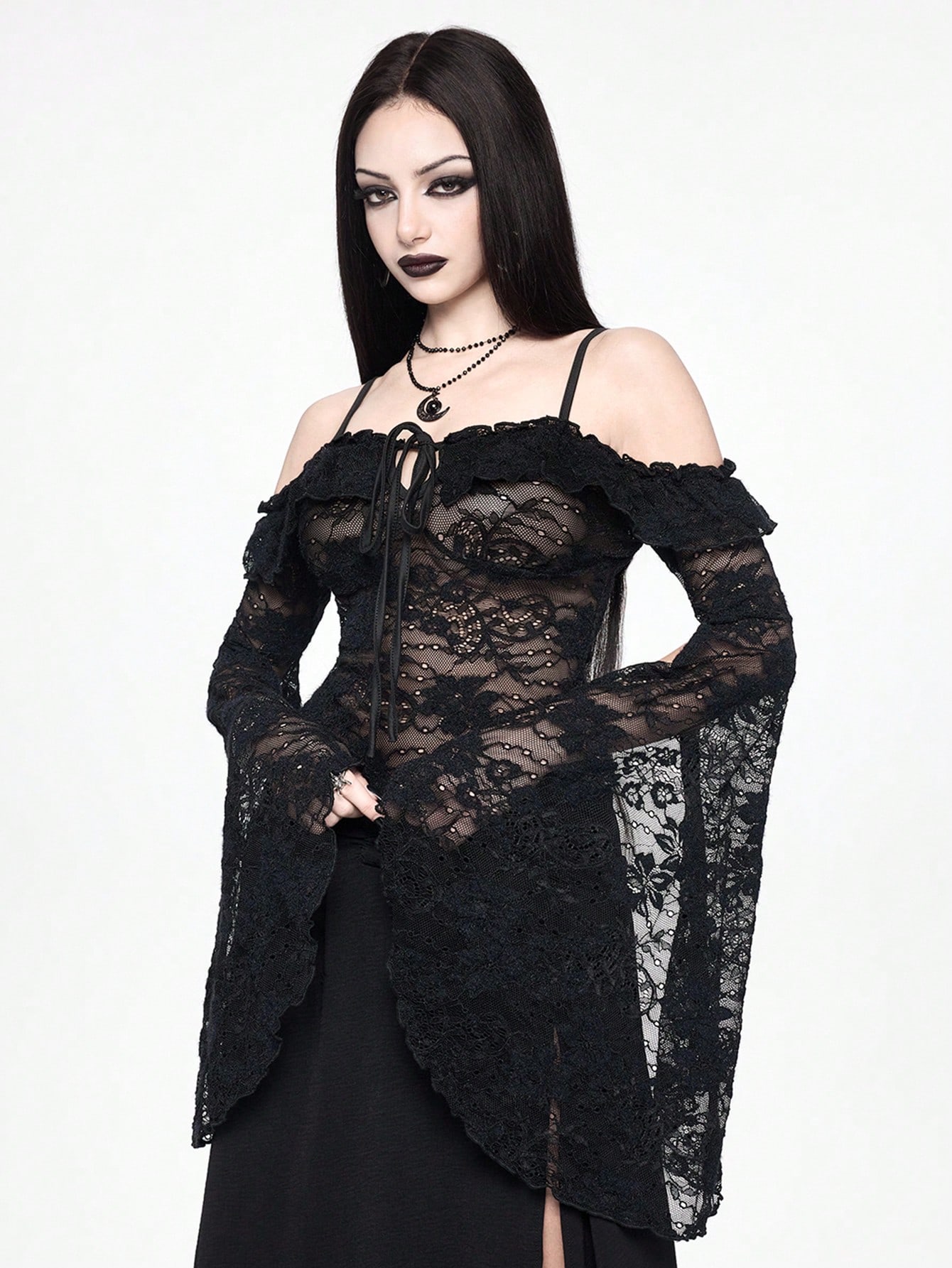 Women's Gothic Lace Sheer Off-Shoulder Flare Sleeve Top