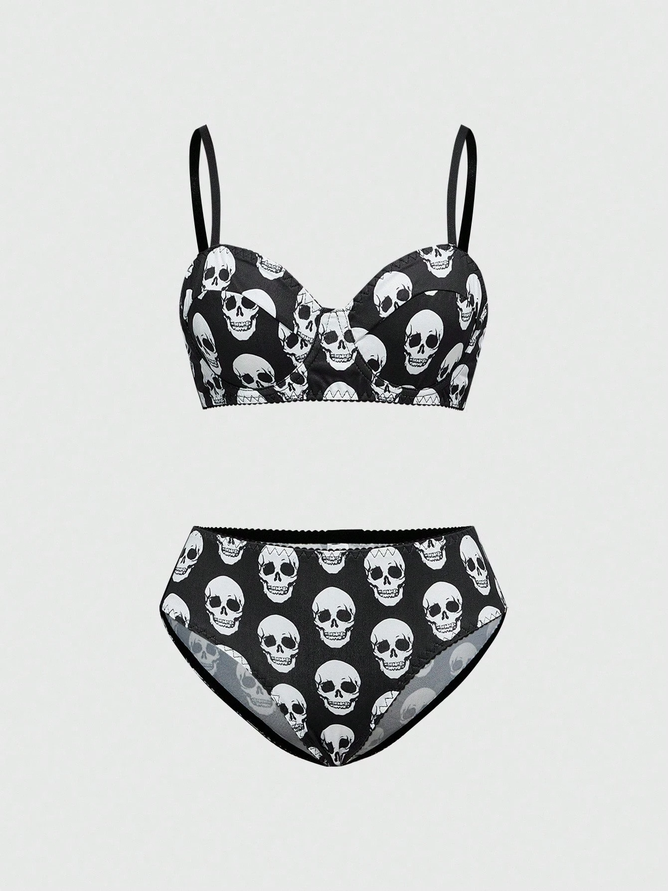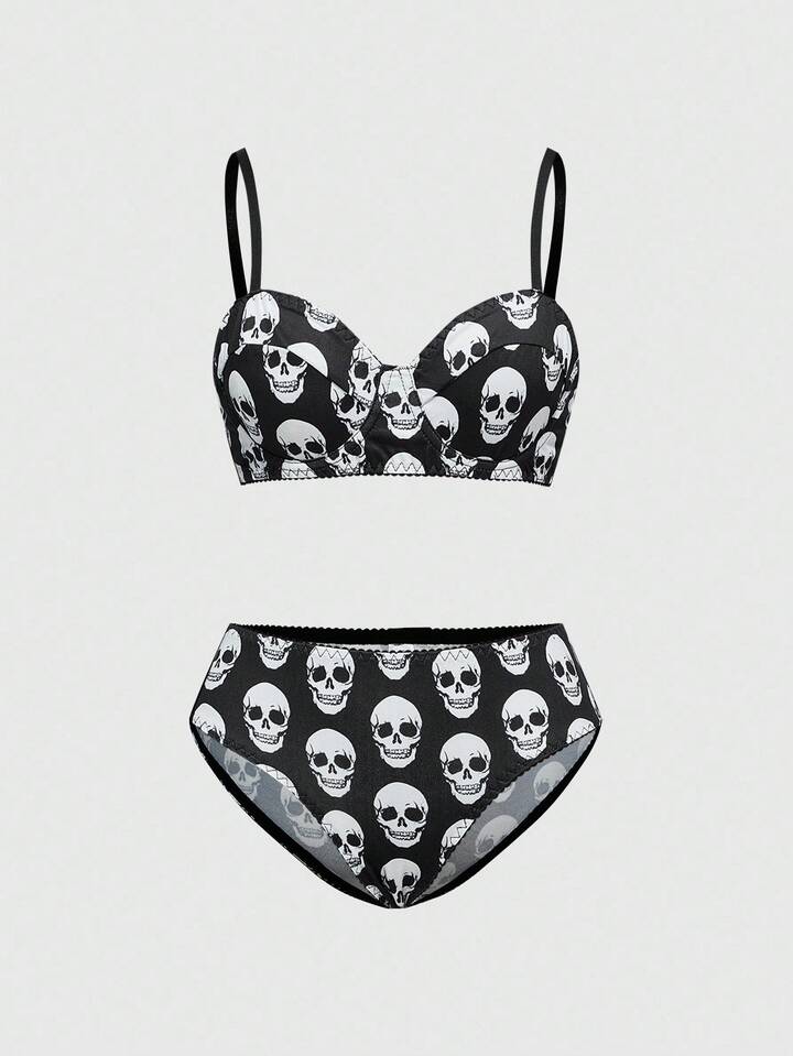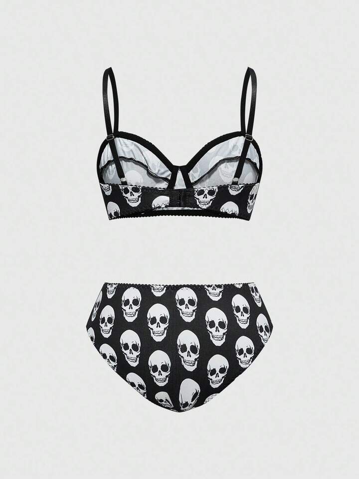 Women's Gothic Skull Print Underwire Bra And Panty Set