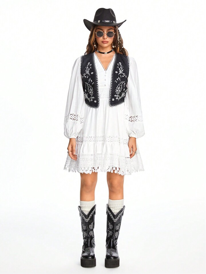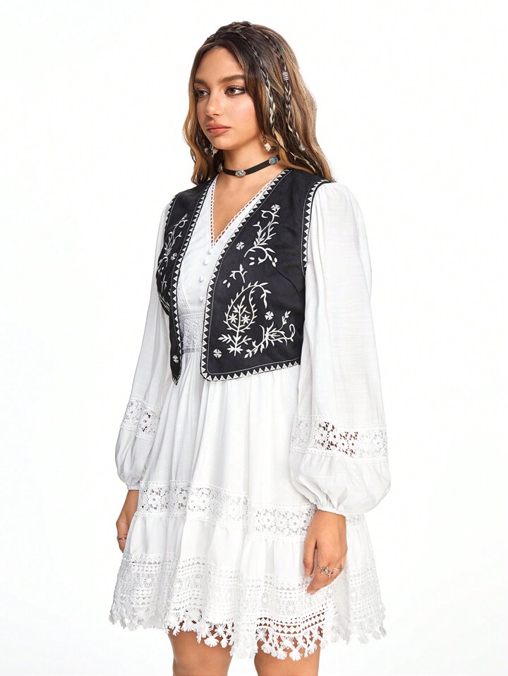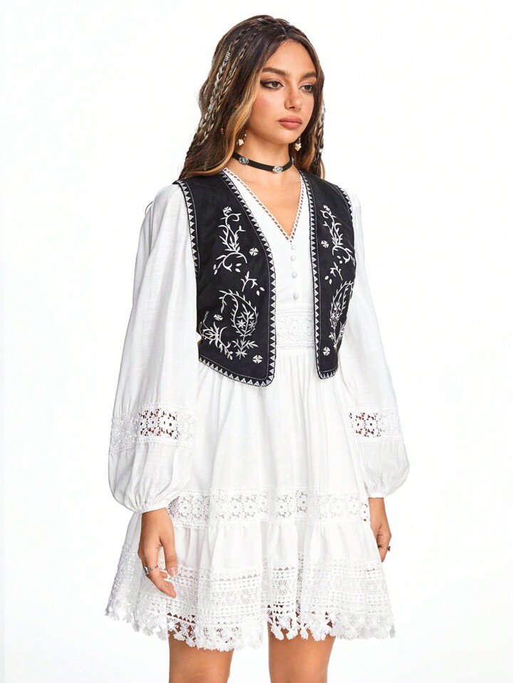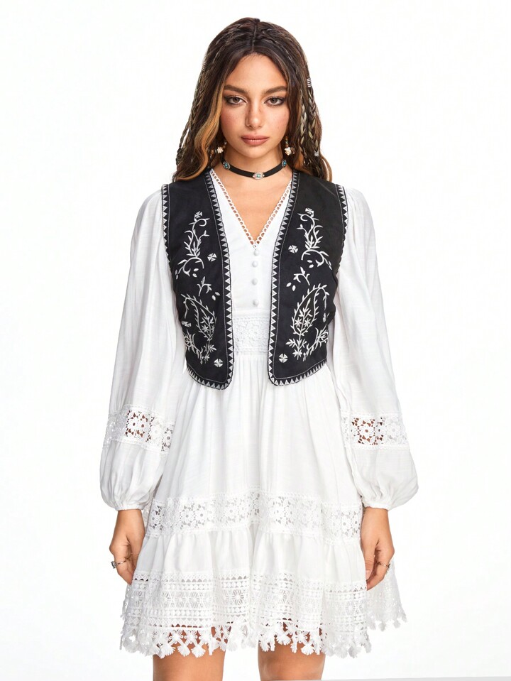 Women's Hippie Style Floral Embroidered Suede-Like Fabric Vest For Resort Wear