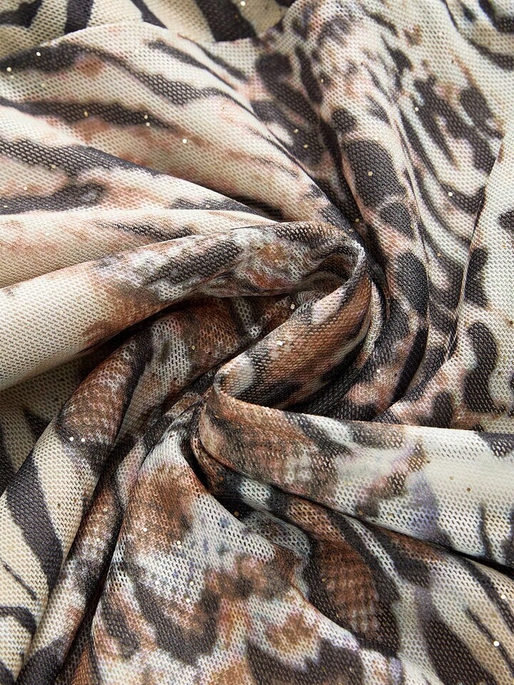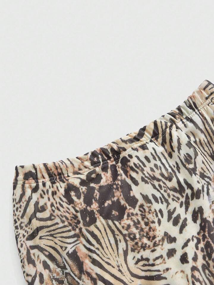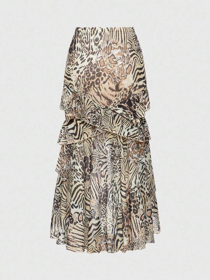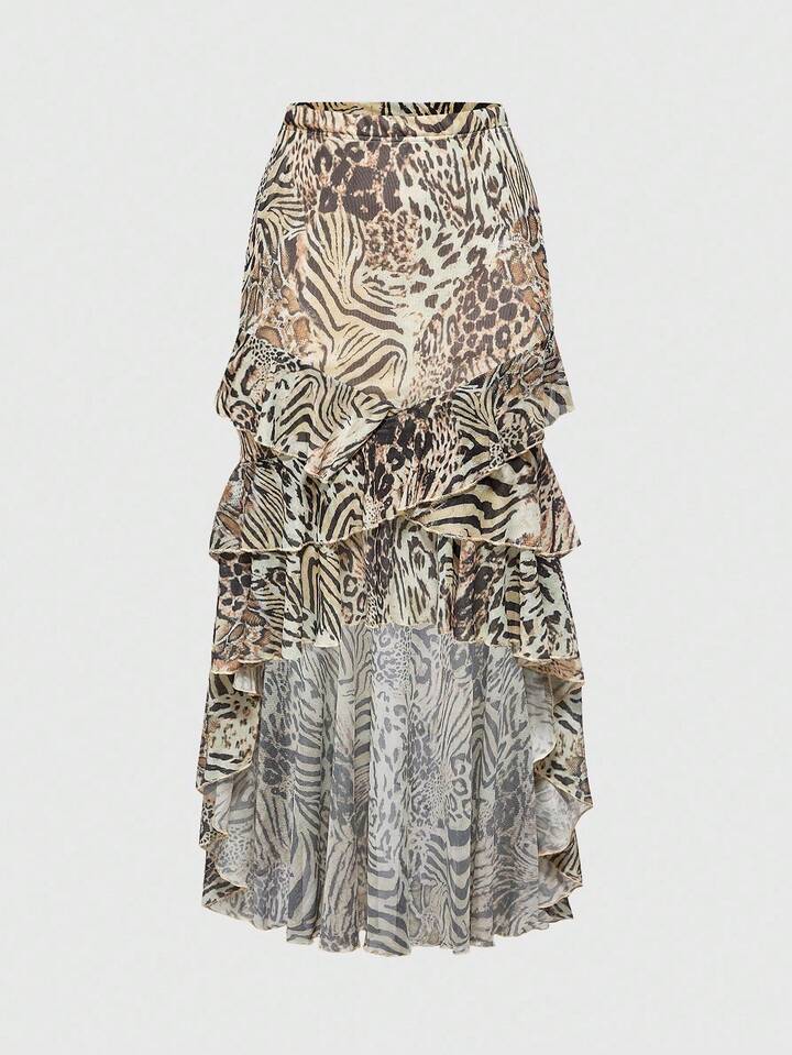 Women's Retro Hippie Chic Music Festival Low Waist Ruffle Hem Leopard Print Chiffon Low Waist Mermaid Skirt