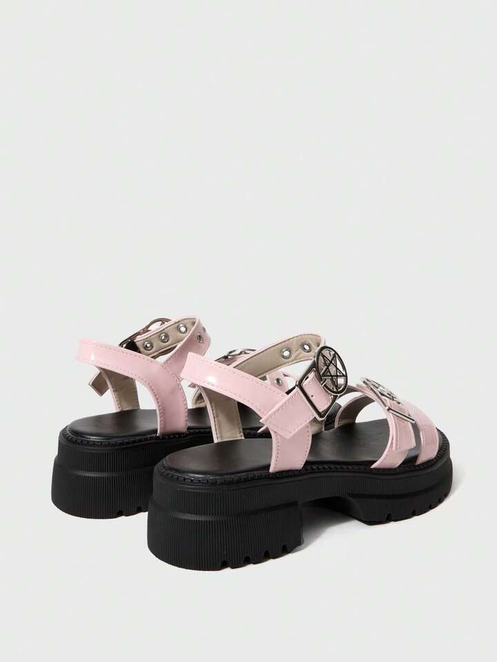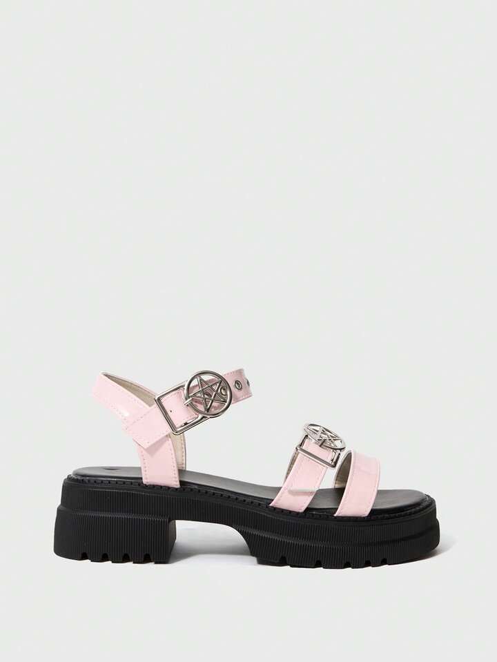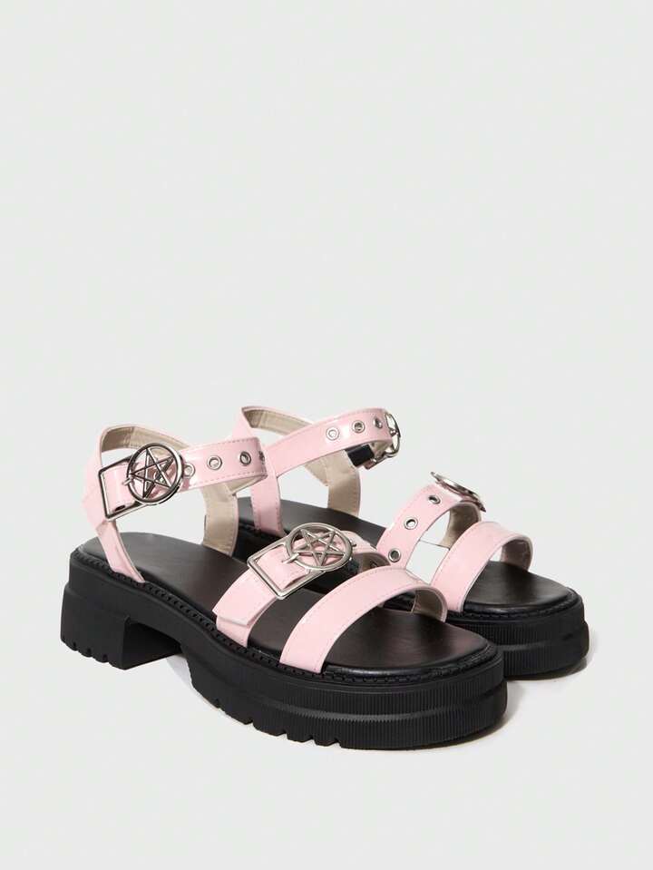 Women's Summer Open Toe Dark Rock Punk Goth Roman Beach Sandals, Star Strap Platform Wedge Sandals Spring Shoes Spring Break Easter, Halloween For Christmas Valentine's Day