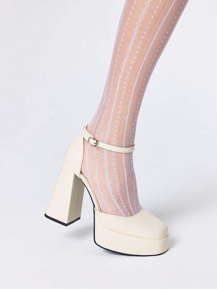 Women's White Close Toe Mary Jane Pumps With Platform, Thick Heel Dress Shoes For Work Or Formal Occasions