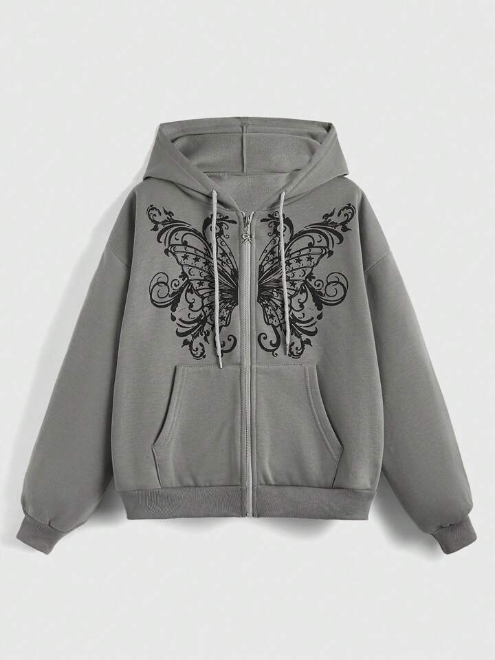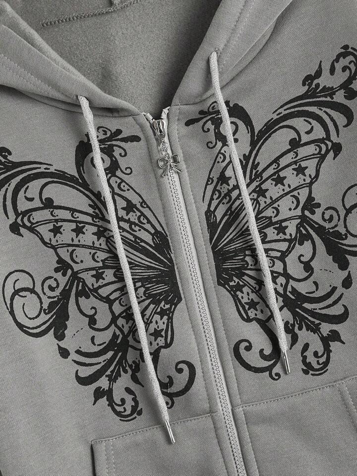 Women's Y2K Butterfly Print Fairycore Hooded Sweatshirt