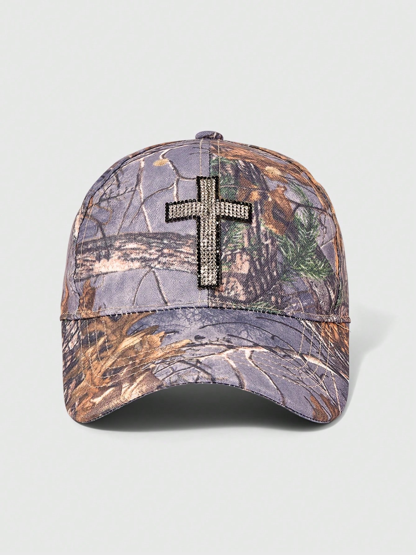 Y2K Fashion Real Tree Pattern Camouflage Rhinestone Cross Daddy Hat--Gothpunk Style Fashion Hat, Suitable For Music Festivals And Concerts, Carnival Parties And Street Style Wear