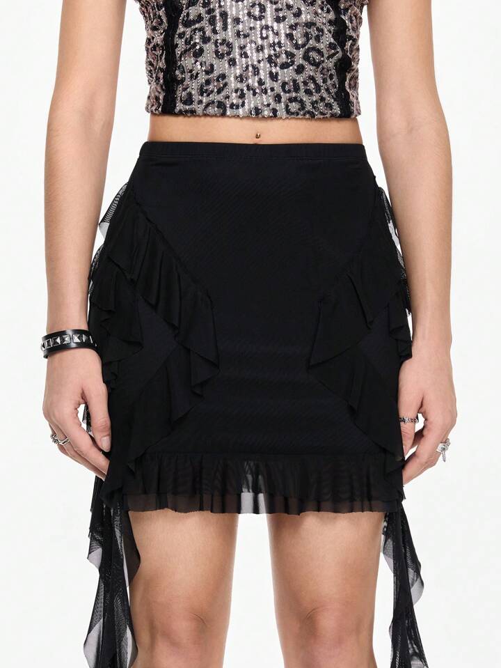 Y2K Harajuku Style Solid Color Ruffle Asymmetrical Hem Ladies Mid-Length Skirt,Summer , Summer Outfits ,Summer Clothes