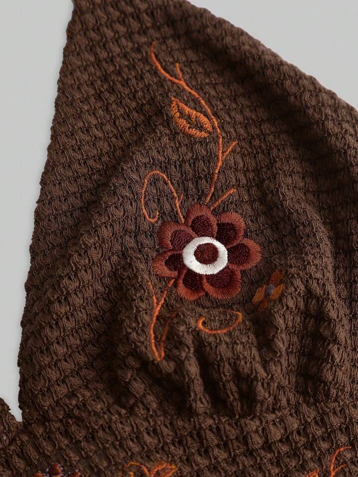 Y2K Hippie Floral Totem Embroidery Halter Neck Layered Hem Casual Mini Dress For Women